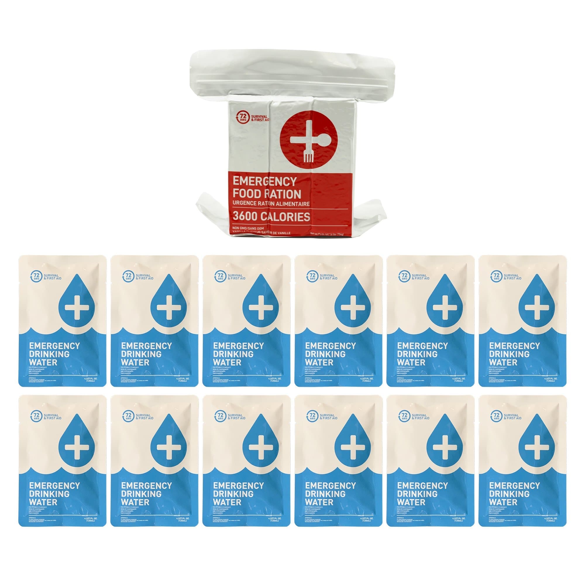 - Emergency food and water rations are packaged in a ziplock bag to conveniently store in emergency backpacks.