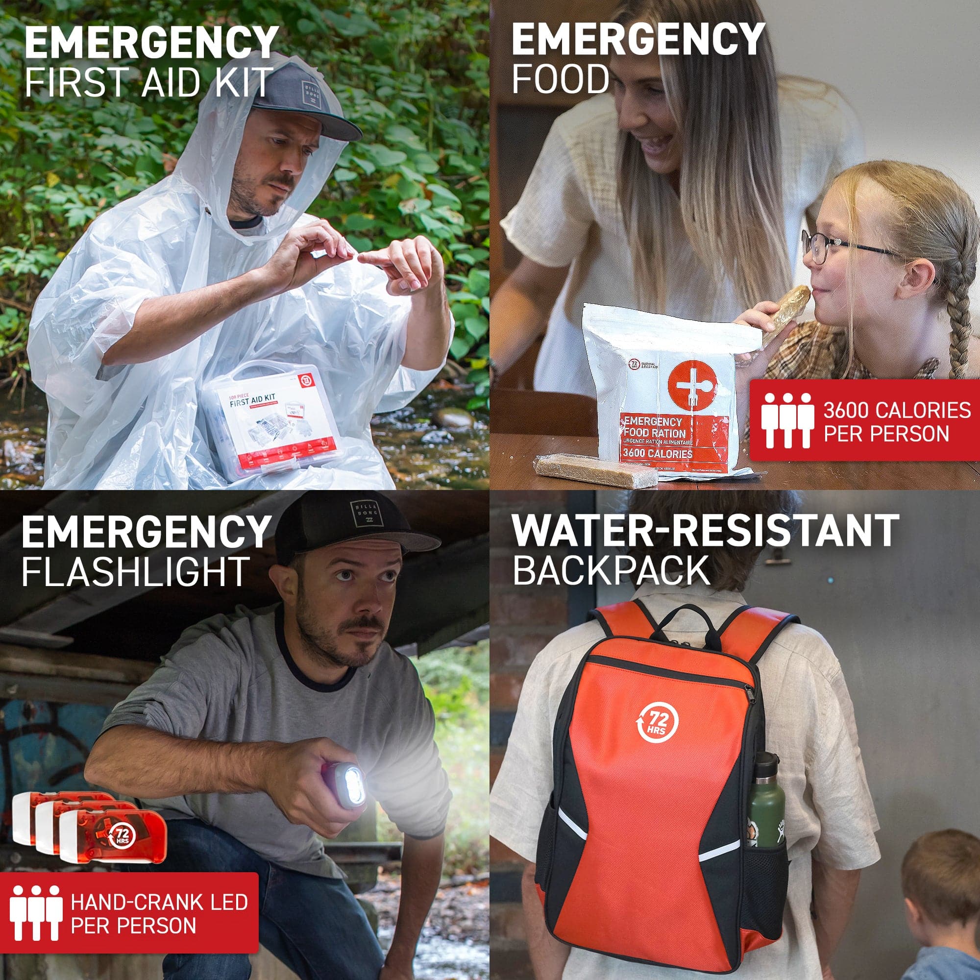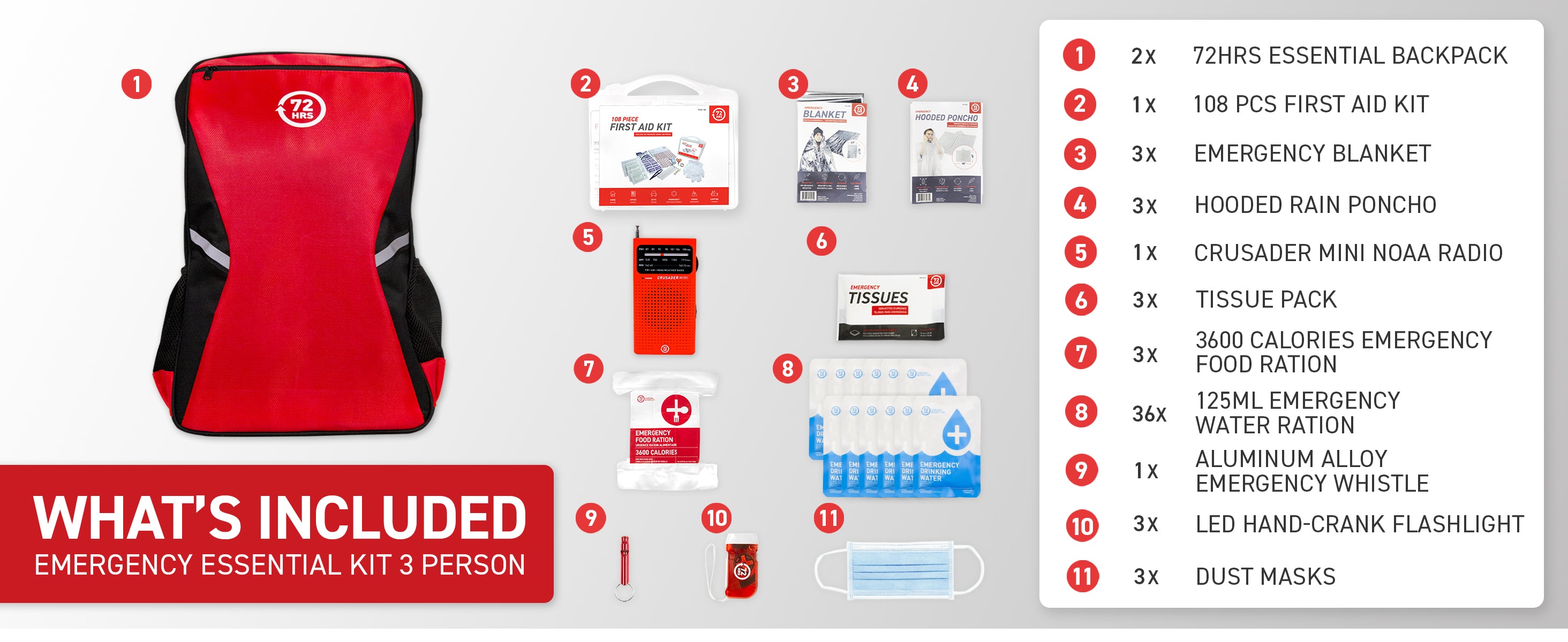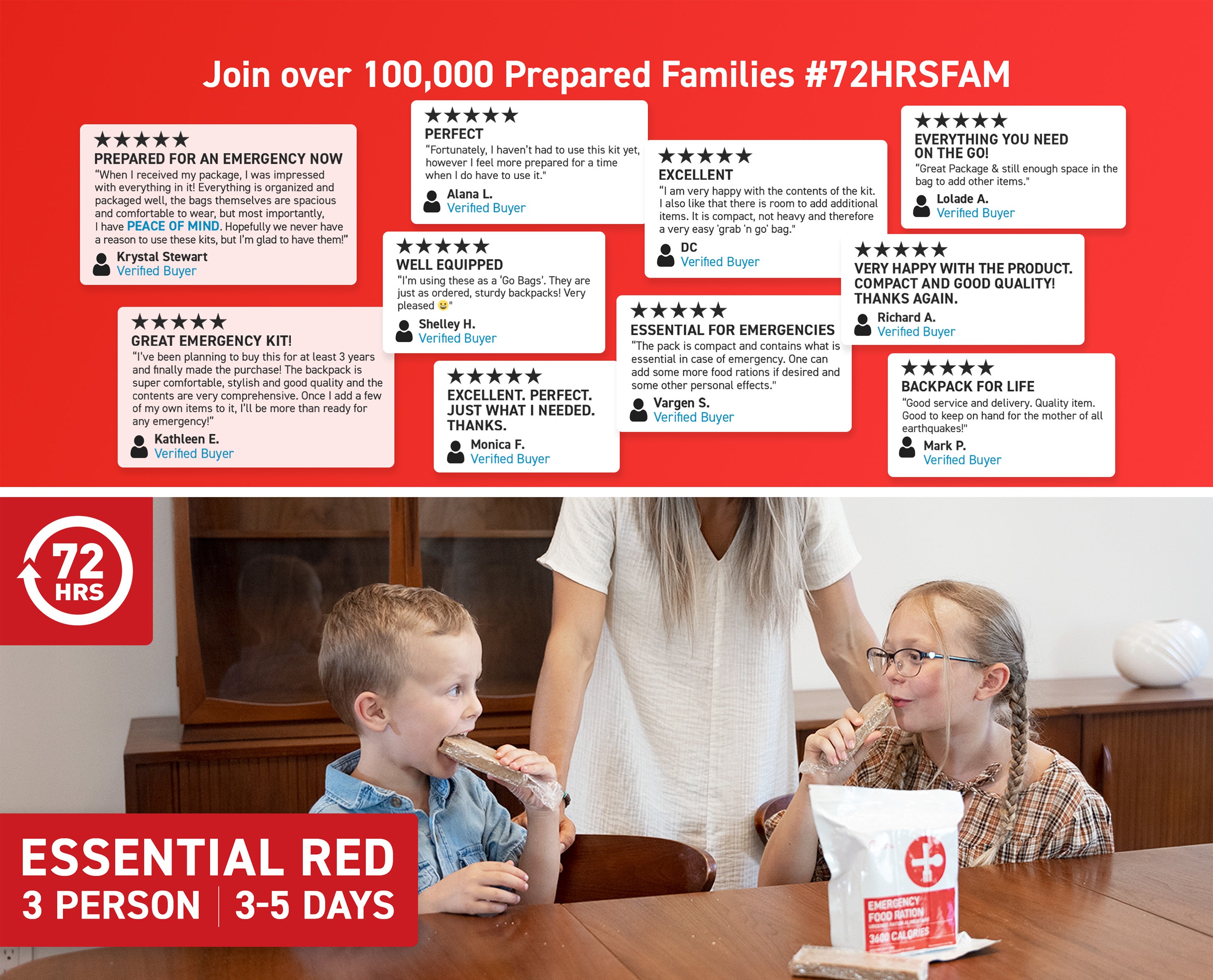3 Person 72HRS Essential Backpack - Emergency Survival Kit (Red)