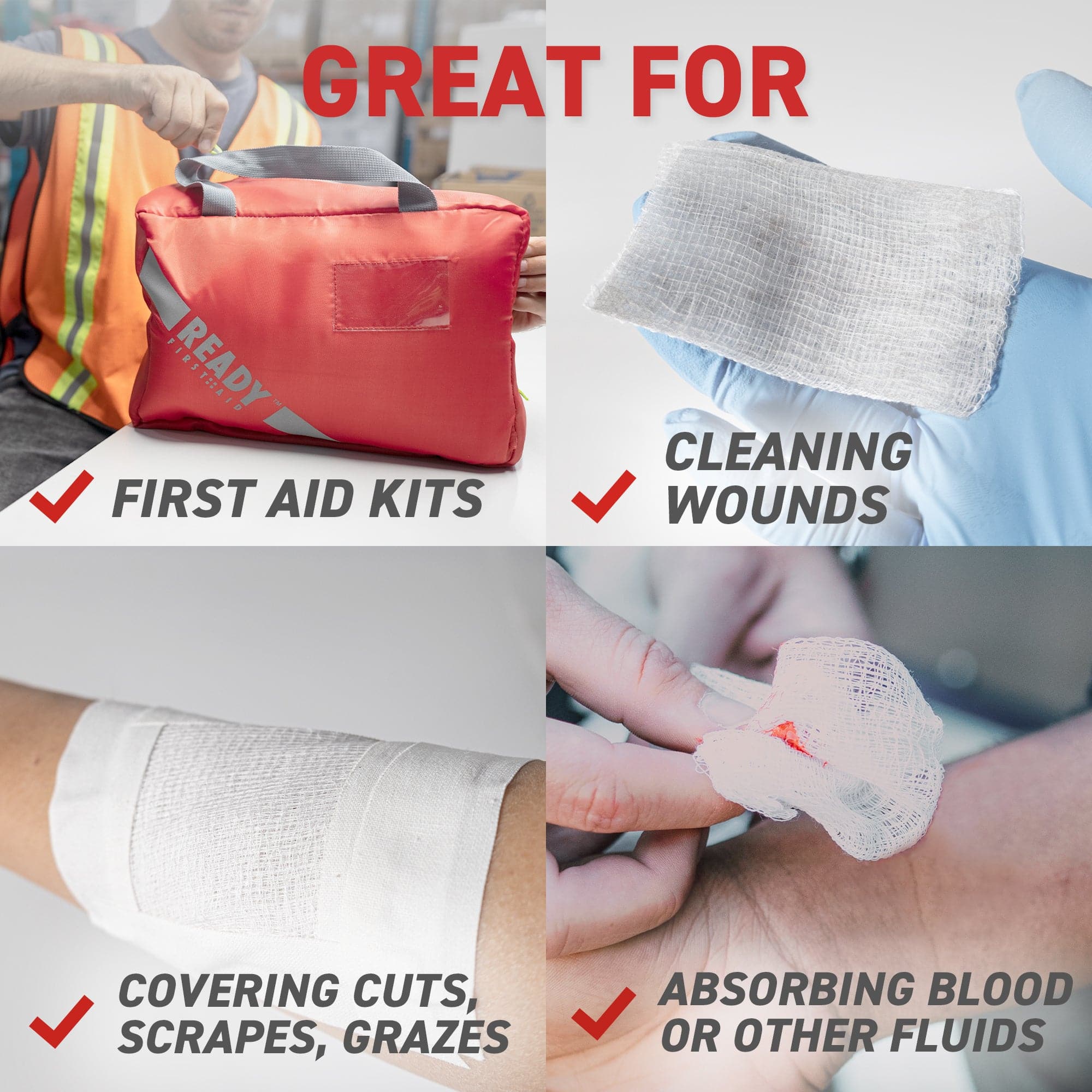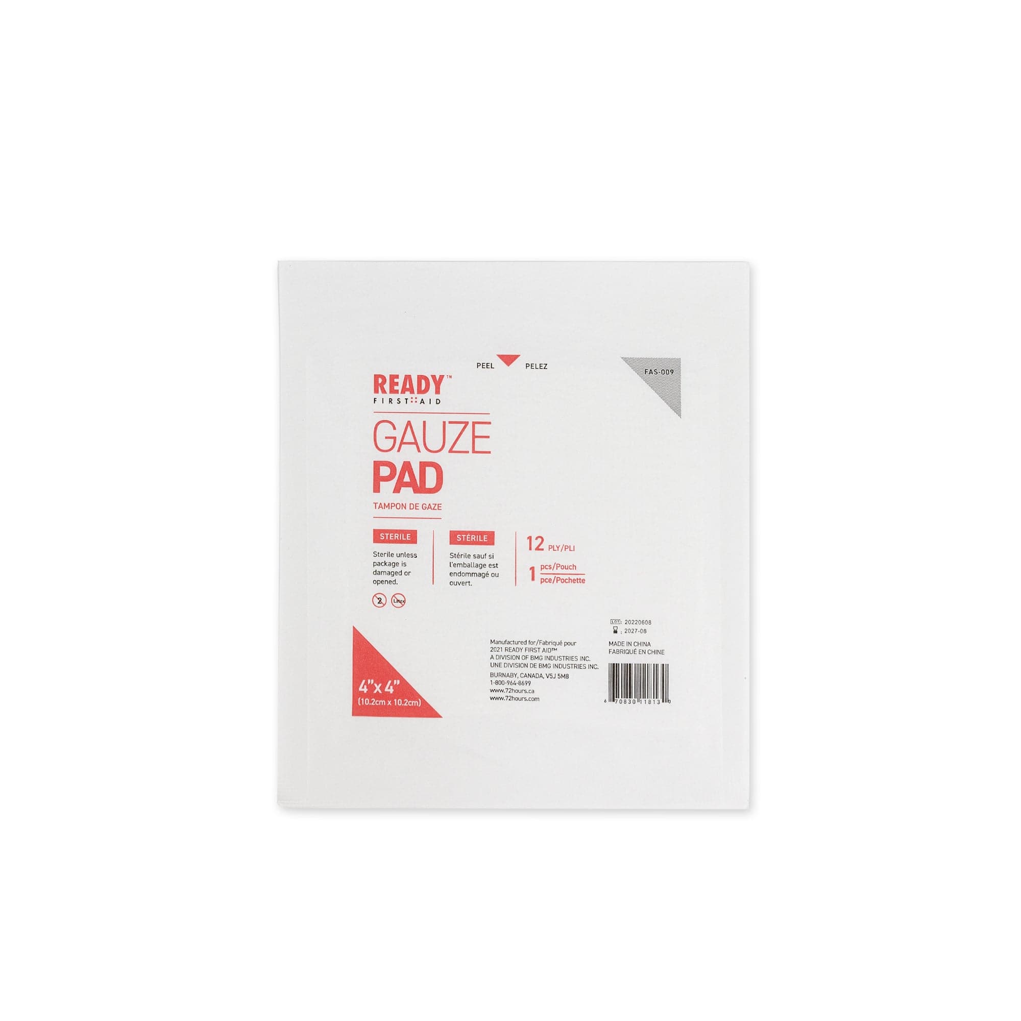 The Ready First Aid Gauze Pads are made with 100% cotton and are 12-ply. Each gauze pad is individually wrapped and sterile so that the gauze can be applied to an open wound directly. An essential item and great for treating minor cuts and scrapes.