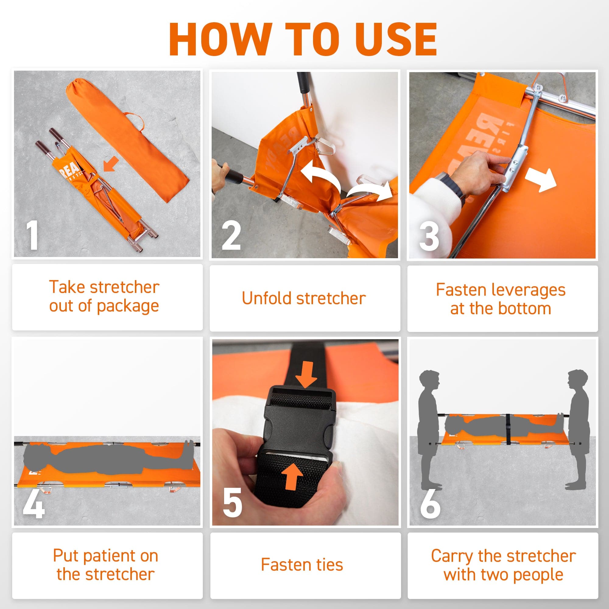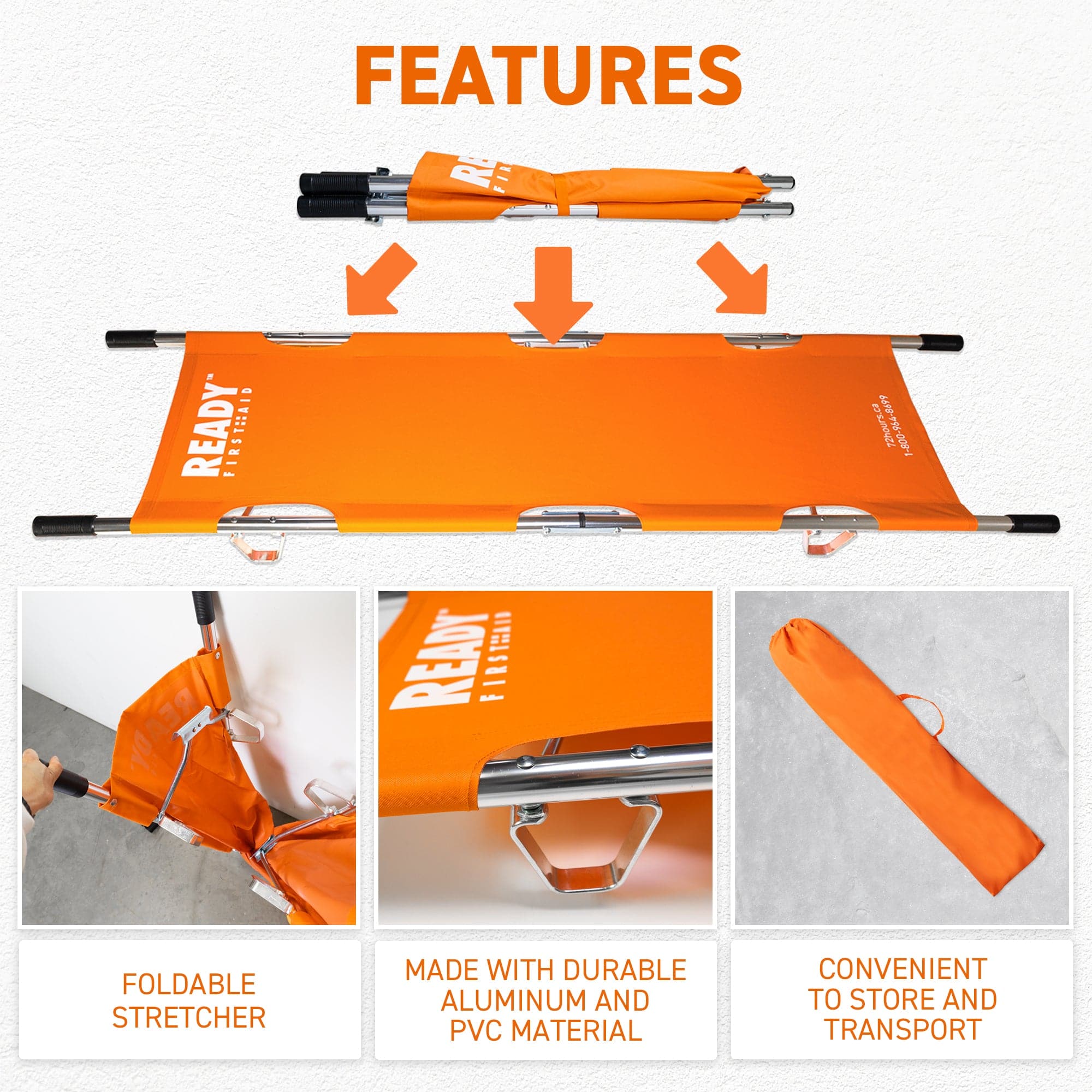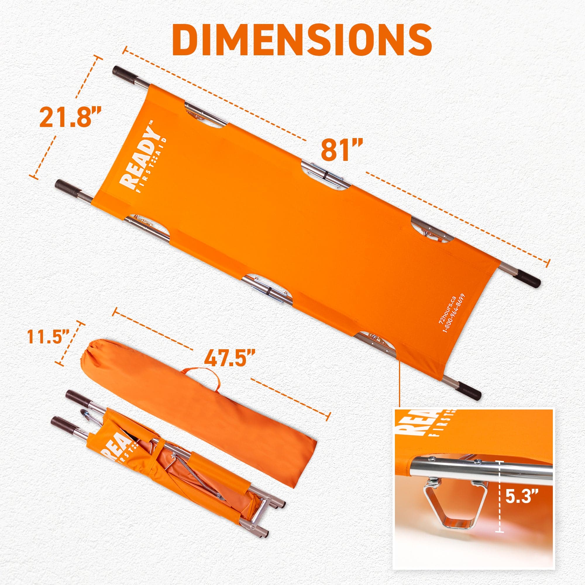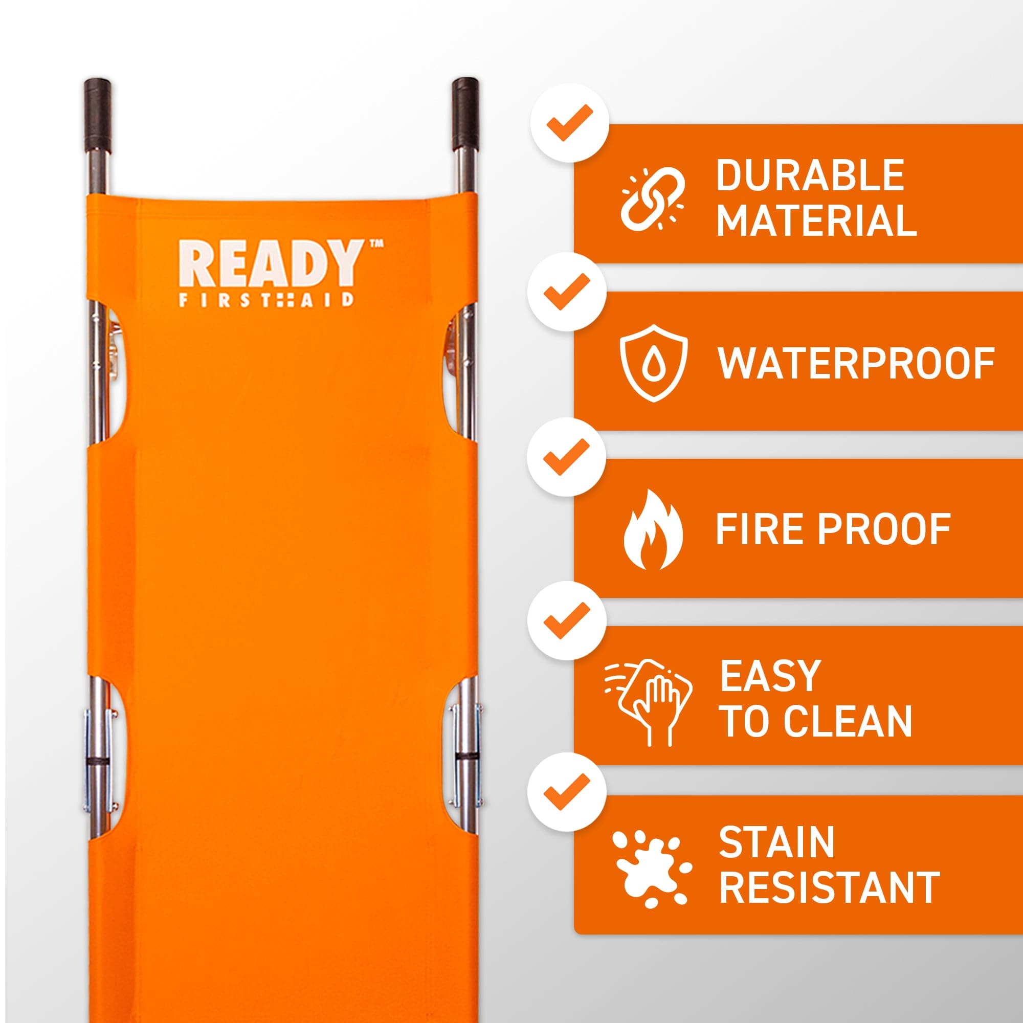 Ready First Aid Orange Folding Portable Stretcher - Durable, Waterproof & Fireproof