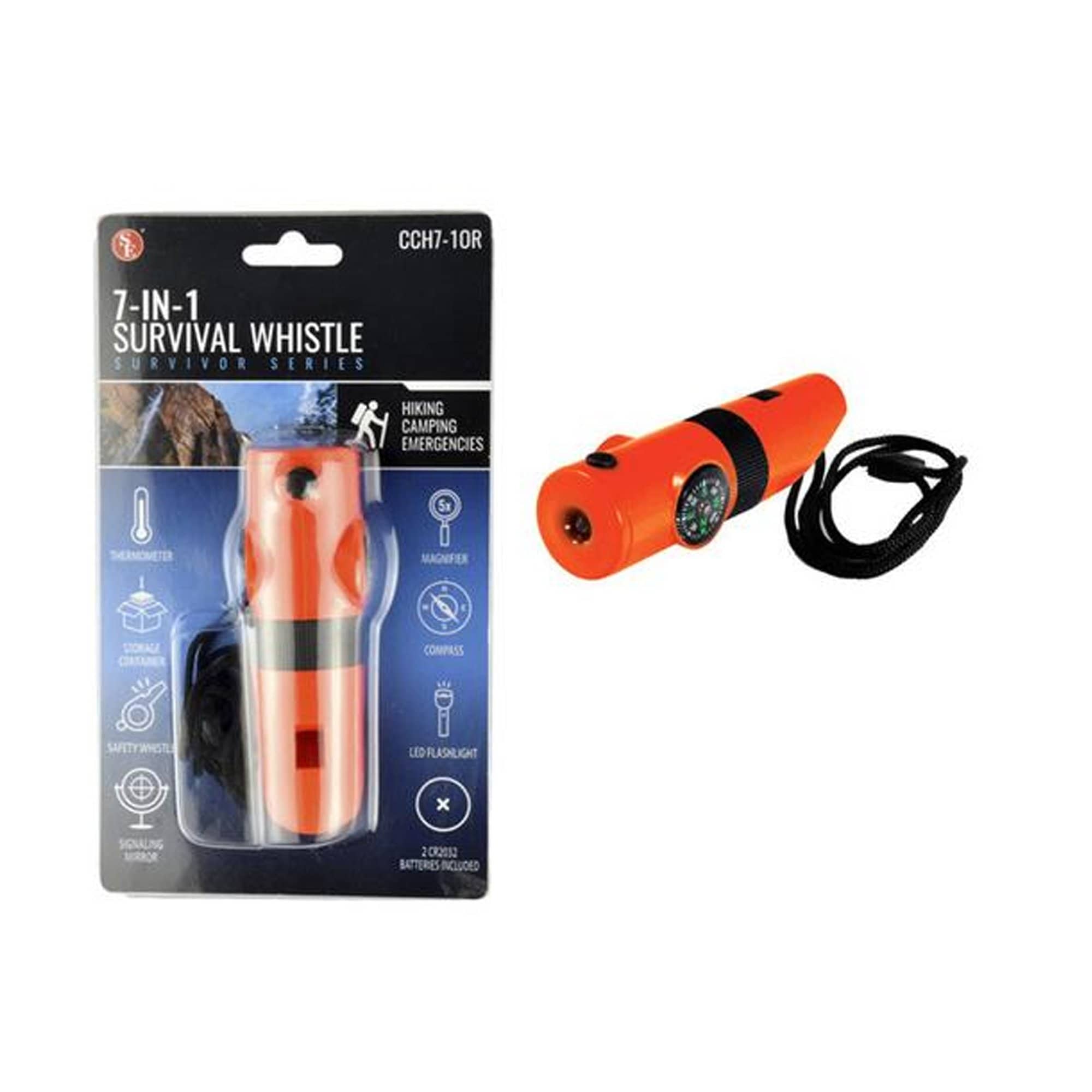 7-IN-1 Survival Whistle with LED Flashlight : Orange Color is the perfect tool to have when hiking, camping, fishing, hunting, traveling and in a emergency.