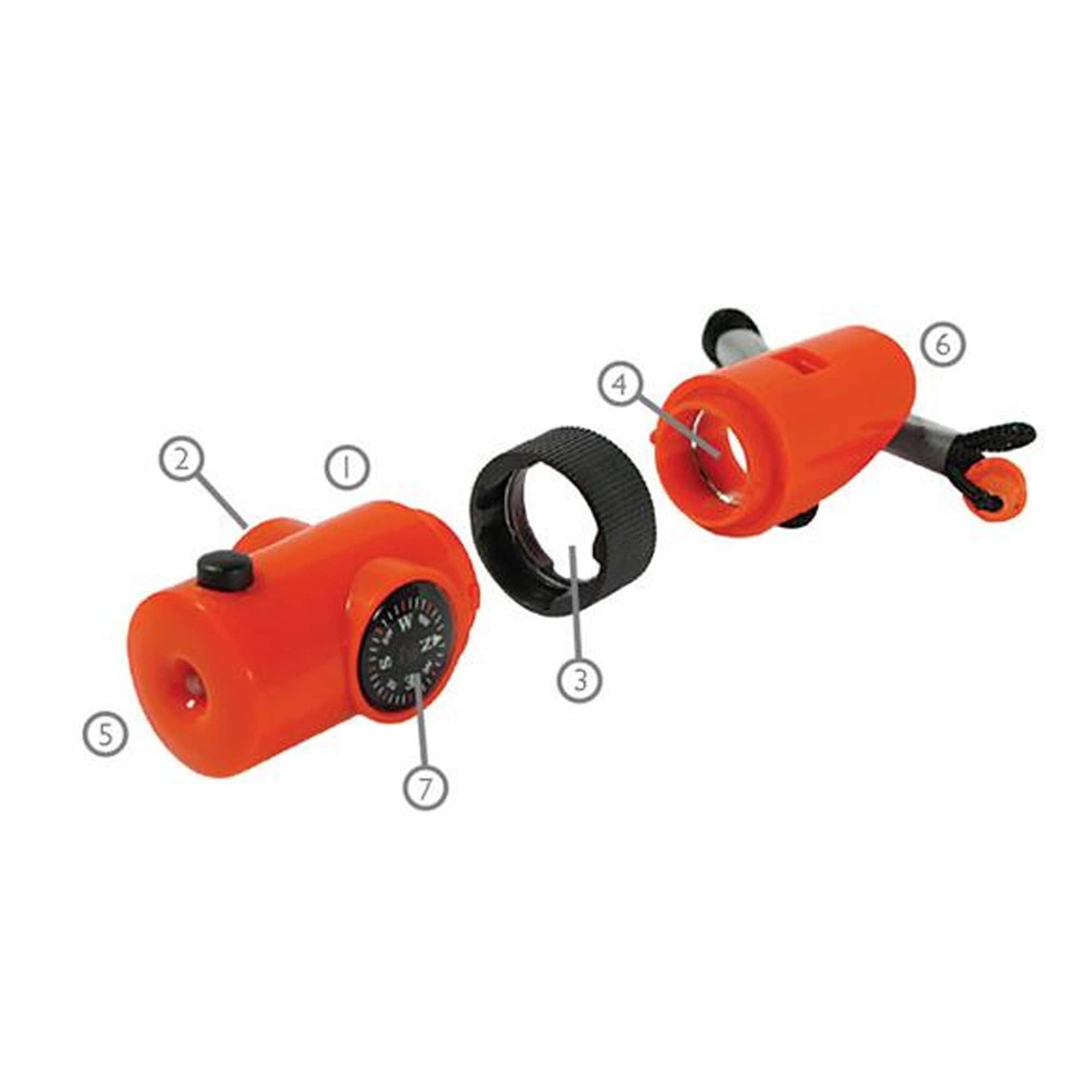 7-IN-1 Survival Whistle with LED Flashlight : Orange Color