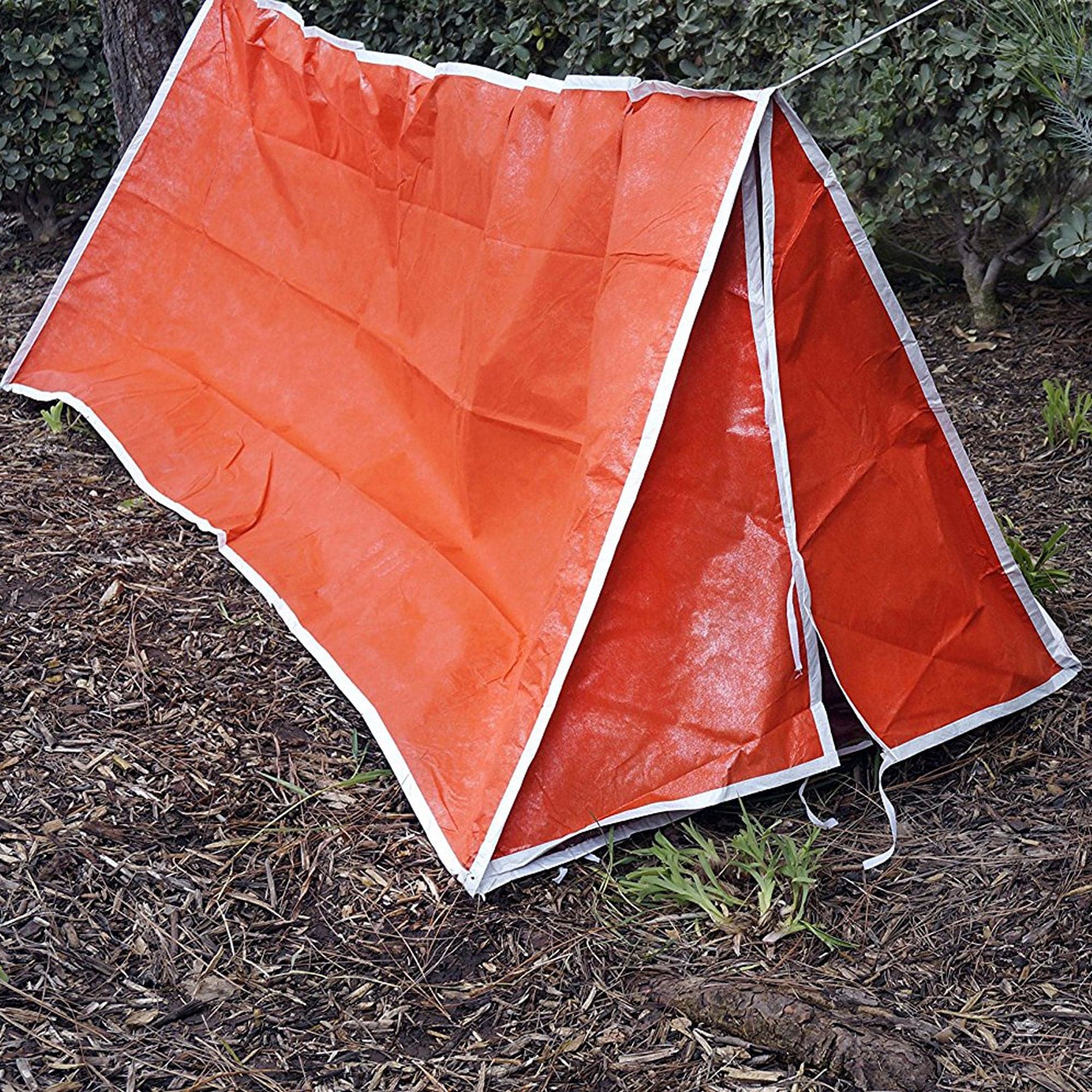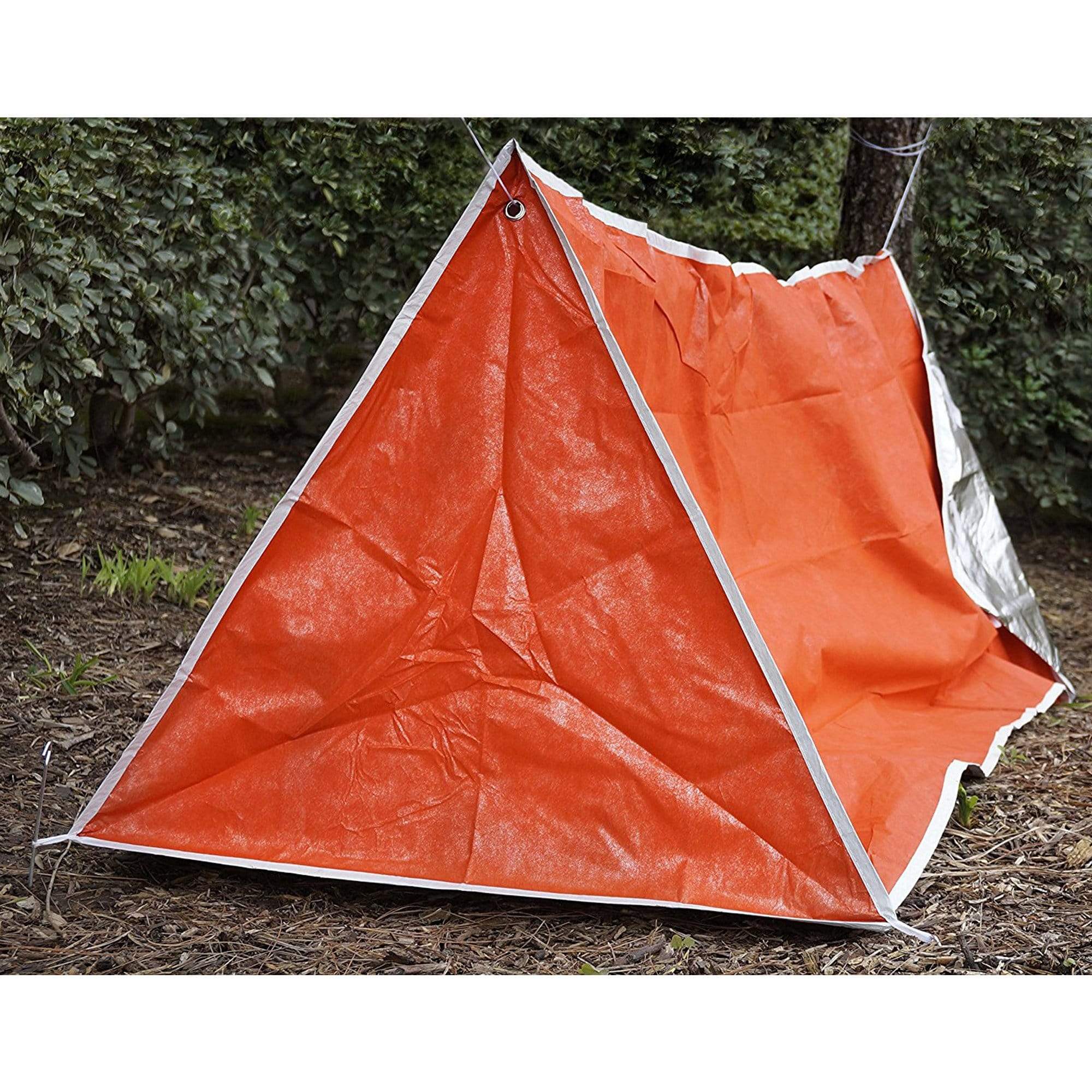 The Aluminum Coated Interior Emergency Tube Tent is lightweight and compact and a great addition for survival, emergency kit and any outdoor activities. It is made to be versatile and can be used as a emergency blanket (retains 90% of your body heat), shelter or ground cover.