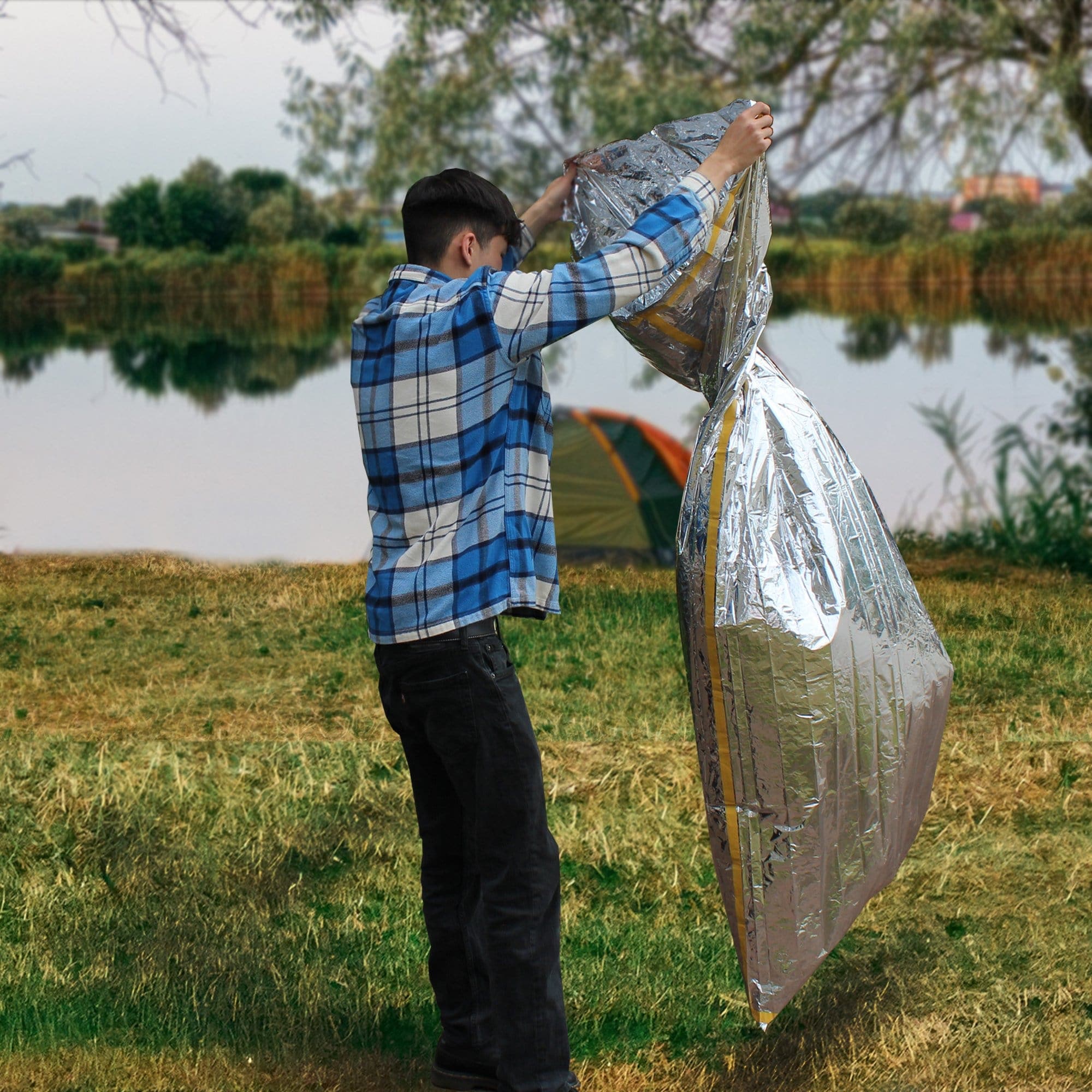 Light and compact, the 72HRS Emergency Sleeping Bag is made of aluminized non-stretch metallic fabric. Great for survival kits, camping, hiking, boating or emergencies. Aluminized fabric provided up to 90% heat retention ensuring optimal warmth. Water and wind resistant, the 72HRS Emergency Sleeping Bag can be used as a shelter or tarp. Reflective metallic fabric can also be used as a reflector or signal in case of an emergency.