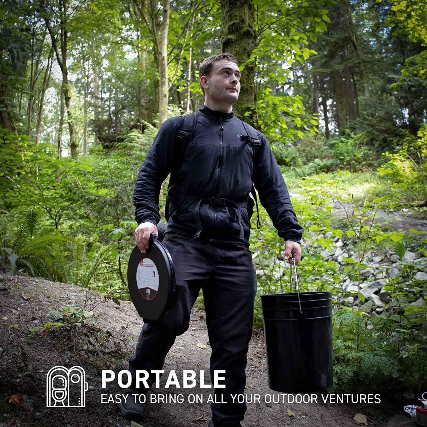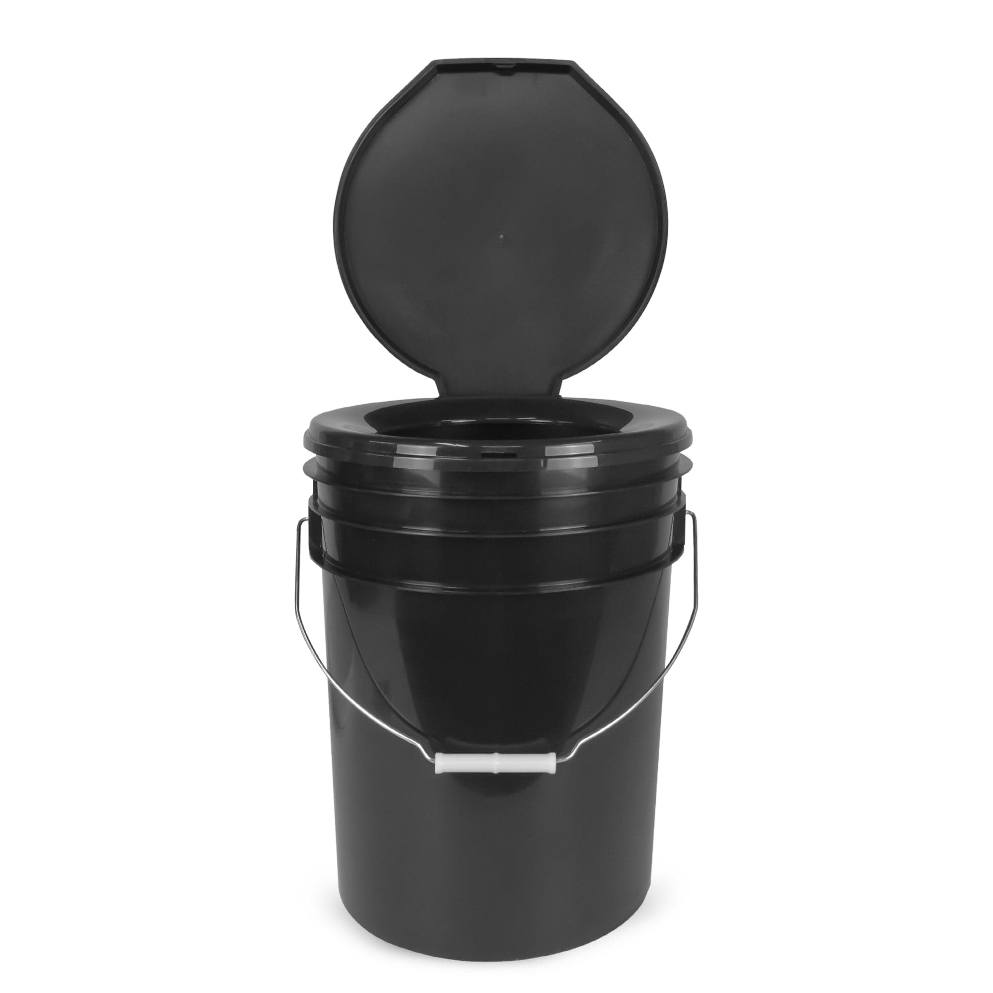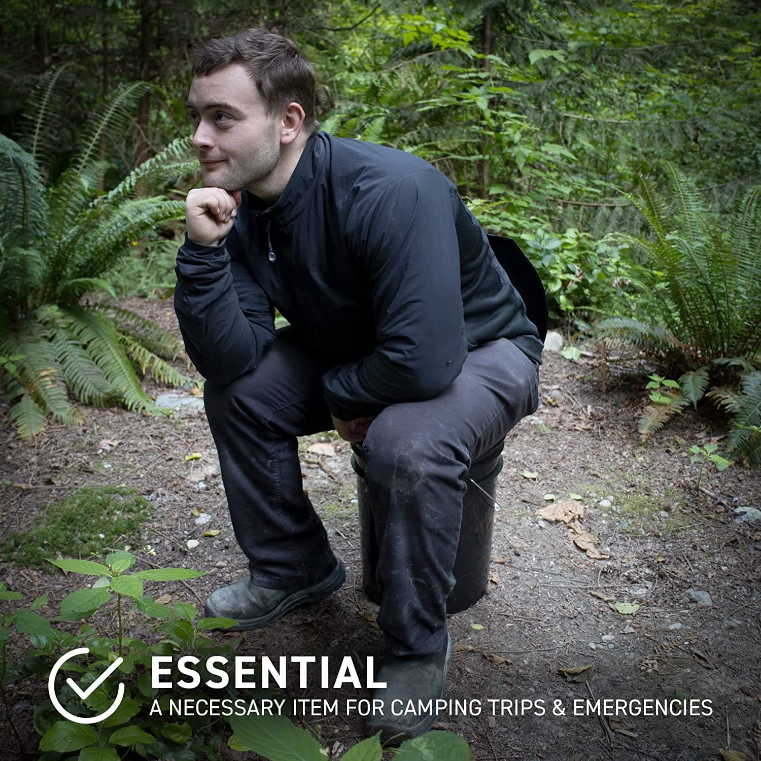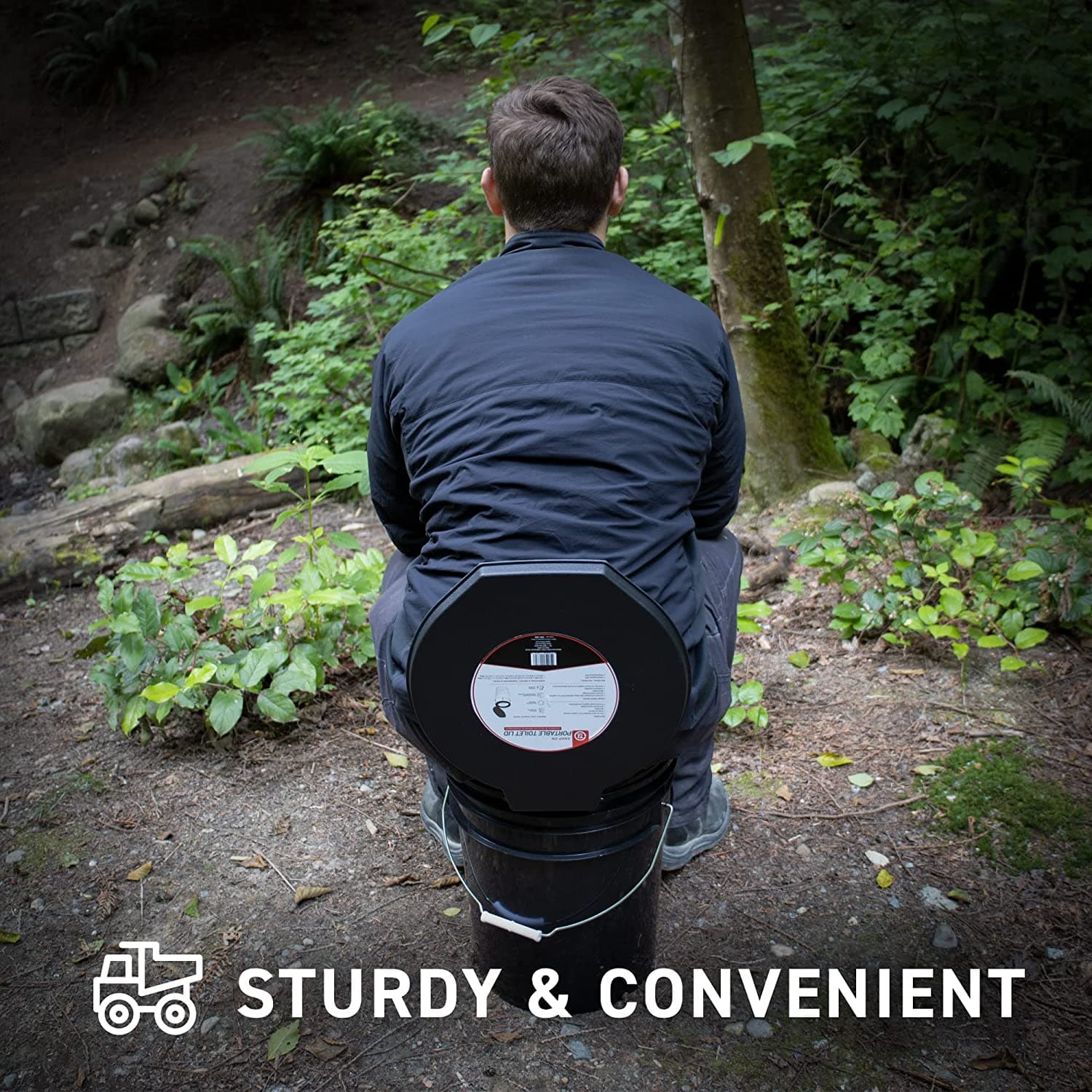 Our standard 5-gallon high-quality food-grade grab bucket is the strong base for this portable toilet which comes with a toilet lid conversion that makes the bucket into a portable toilet. It is great for camping and emergencies when running water is unavailable. The portable toilet works hand in hand with the toilet bag with deodorant which helps keep the inside of the bucket clean and able for use even after you've done your business.