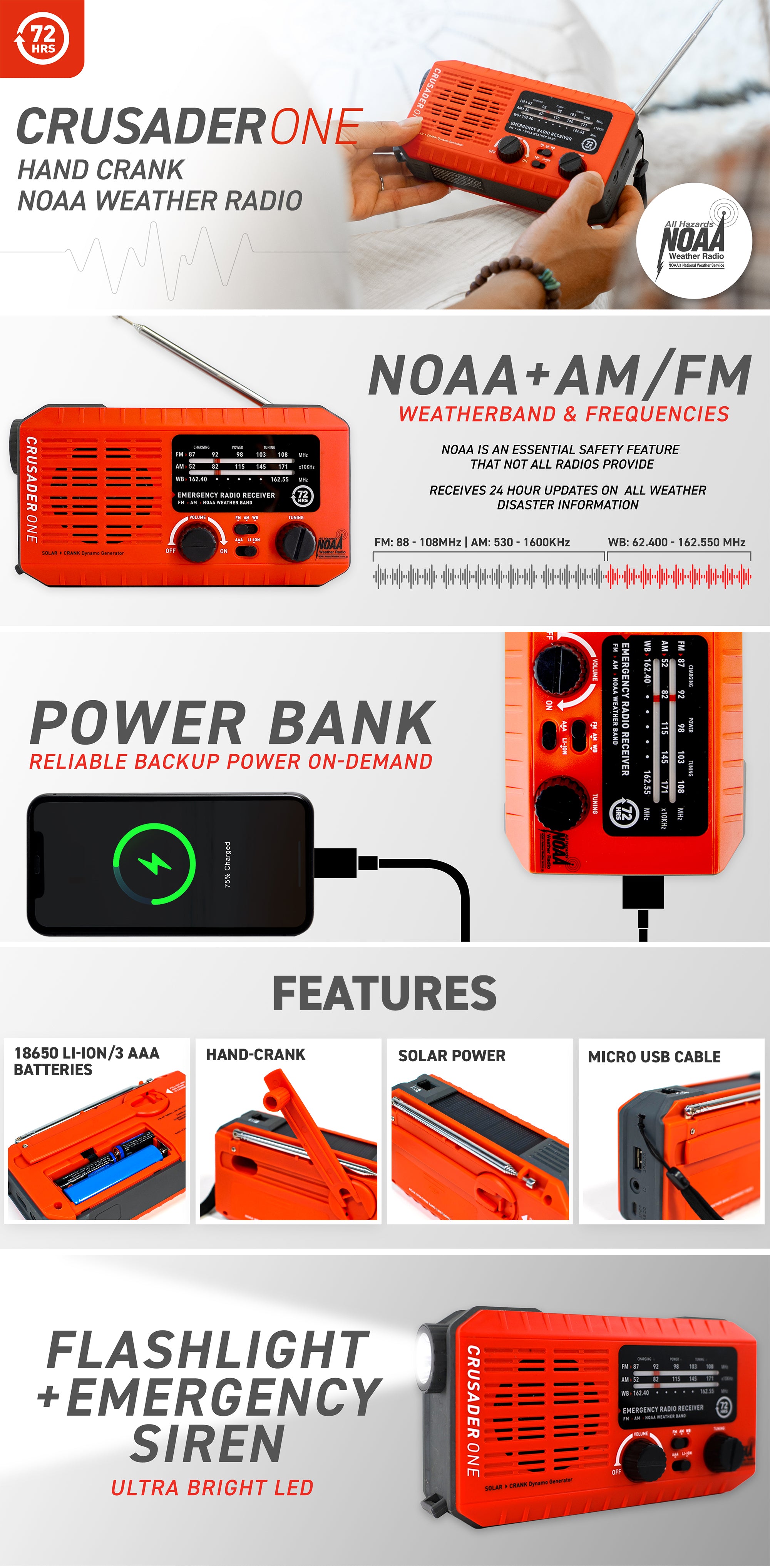 72HRS CRUSADER ONE NOAA Flashlight Analog Radio