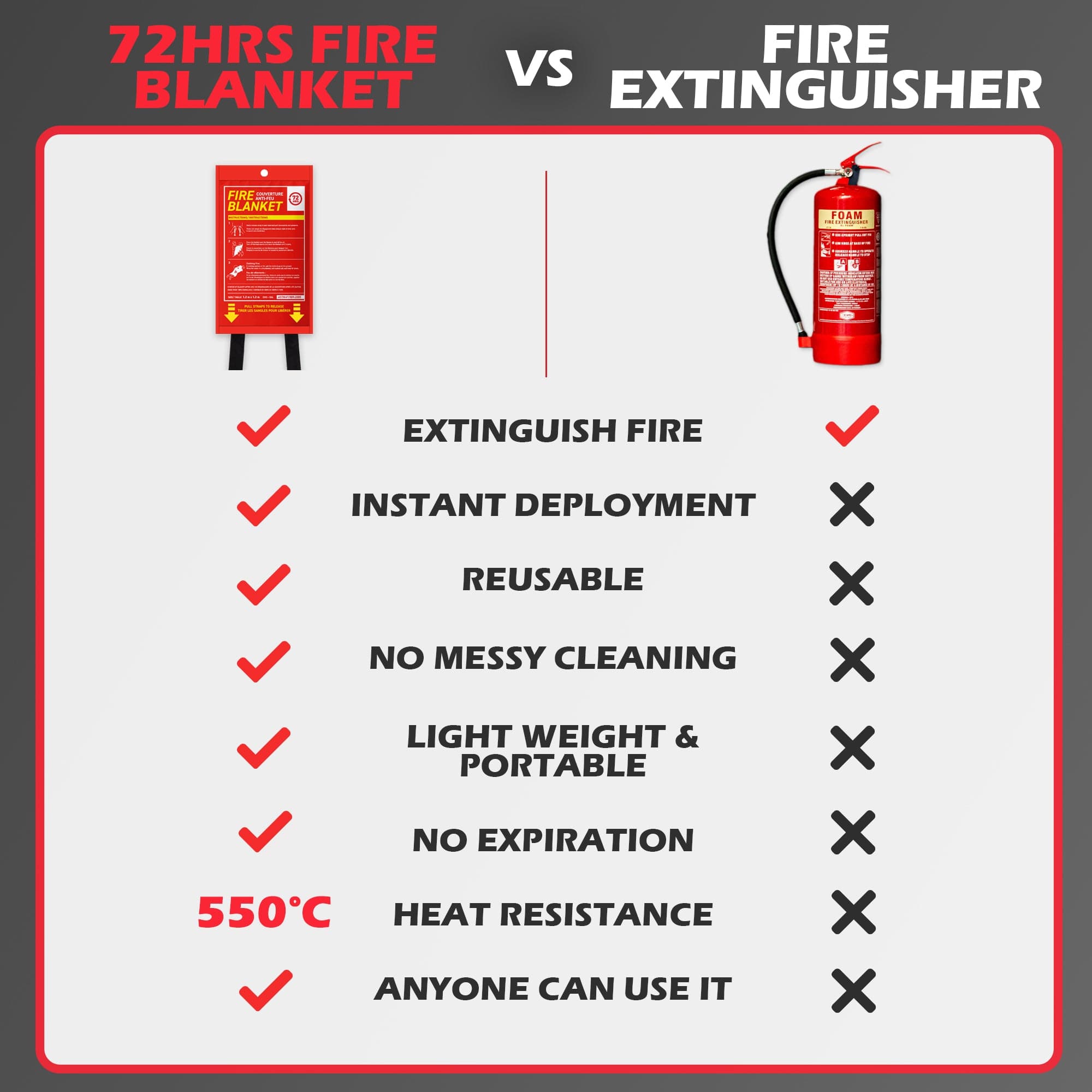 The 72Hrs fire blanket is easy to carry and move around, making it ideal for quick access in emergencies. Its portability ensures it can be conveniently stored in homes, offices, or vehicles, ready for immediate use when needed.