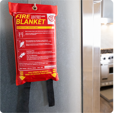 USING THE STRAPS, PULL THE FIRE BLANKET OUT