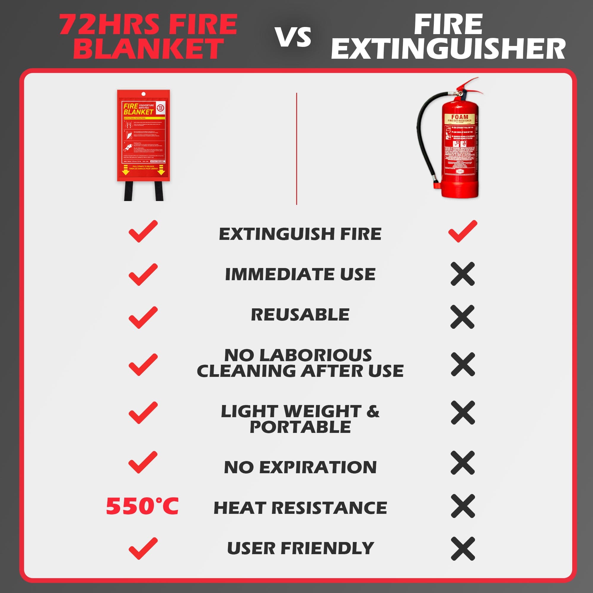 The 72Hrs fire blanket is easy to carry and move around, making it ideal for quick access in emergencies. Its portability ensures it can be conveniently stored in homes, offices, or vehicles, ready for immediate use when needed.
