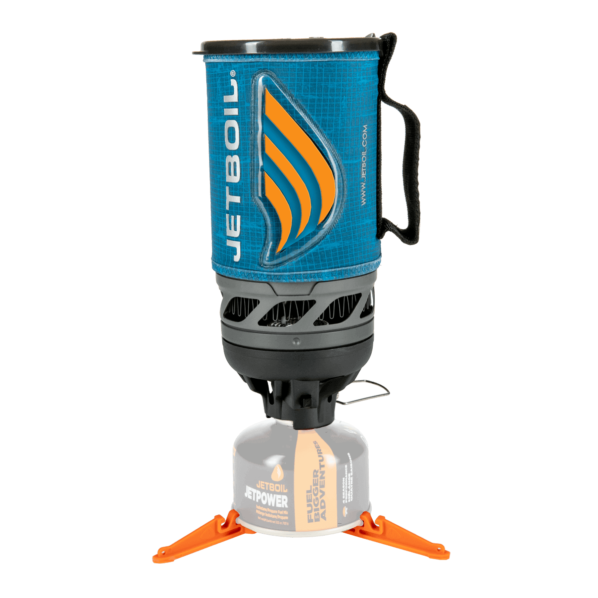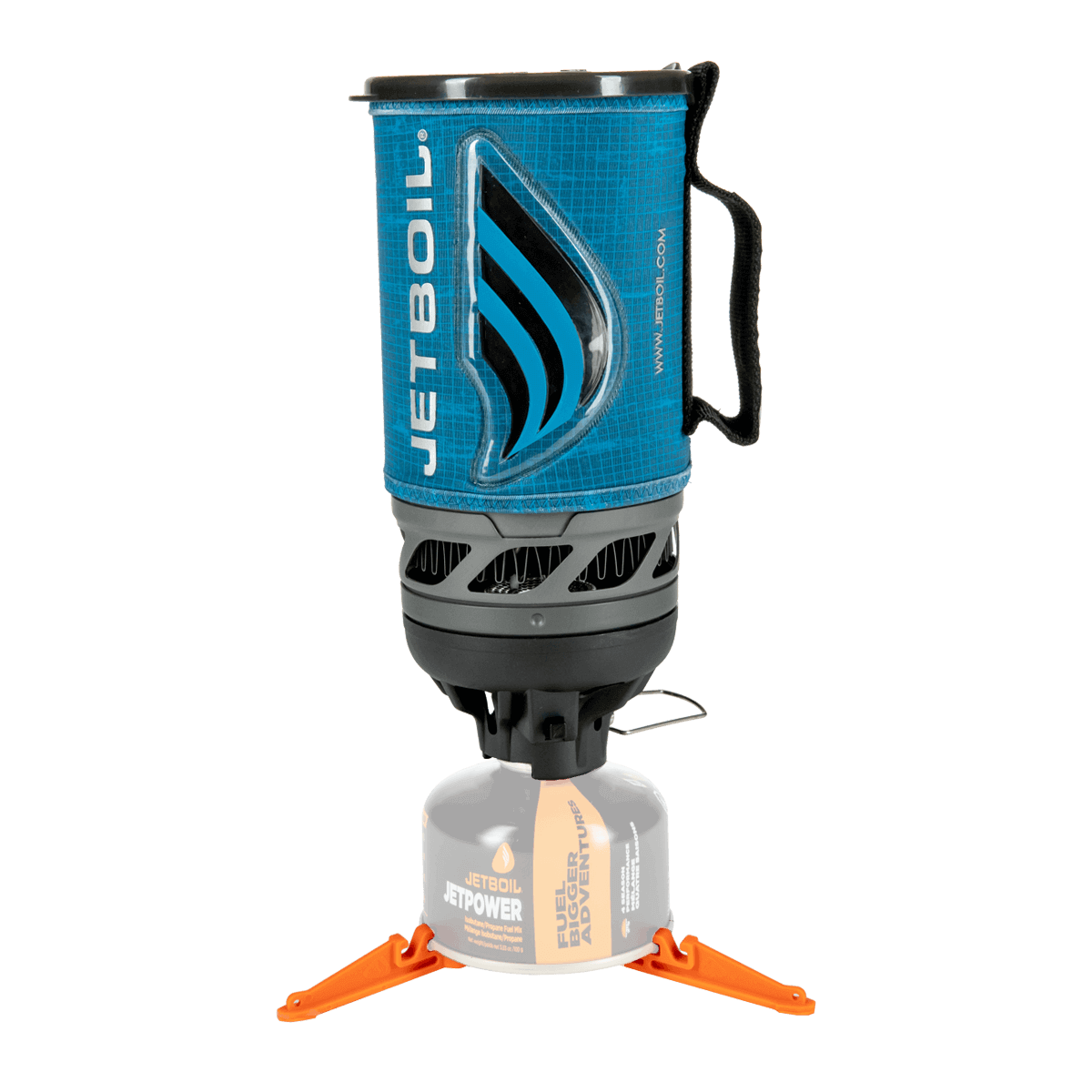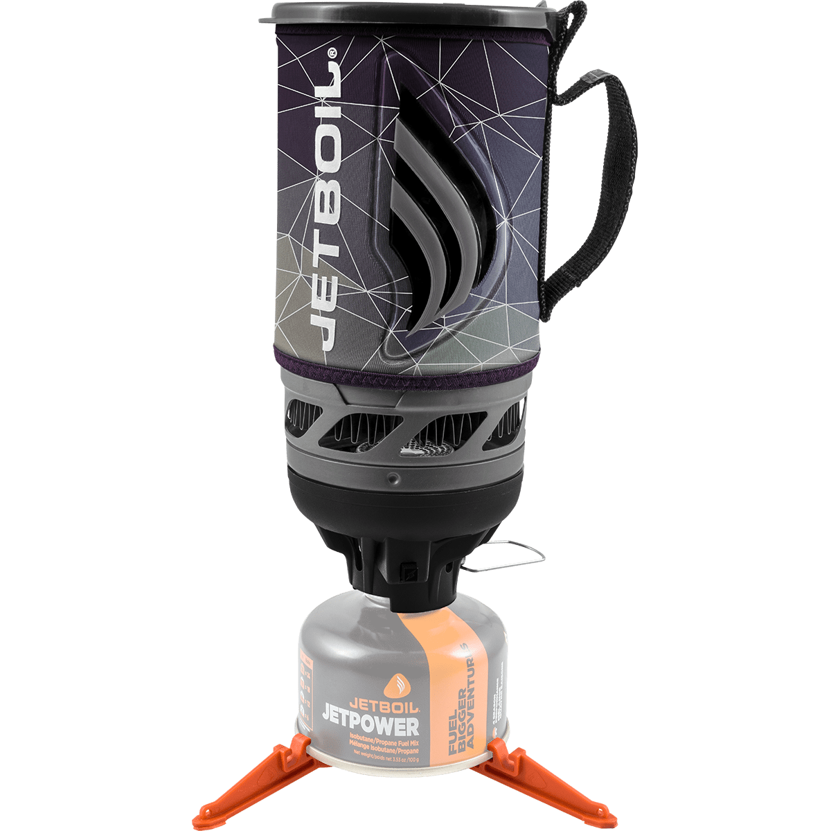 Blistering boil times come standard on the Flash personal cooking system, the ultimate camping stove for preparing coffee, soup, or dehydrated meals on the trail. Optimized for efficiency, the Flash boils water in a lightning-quick 100 seconds, making it the fastest Jetboil ever. Jetboil's 1-liter FluxRing cooking cup with insulating cozy makes boiling water—and keeping it warm—a breeze. Start heating instantly with the convenient, reliable pushbutton igniter, and verify that the water's ready with the thermochromatic colour-change heat indicator. Compatible Jetboil accessories, such as a coffee press, hanging kit, pot support, skillet, FluxRing cooking pot, and utensils make this a necessity for your next backpacking adventure. Includes fuel canister stabilizer; bottom cup doubles as a measuring cup and a bowl; easy to pack and carry at only 13.1 ounces.