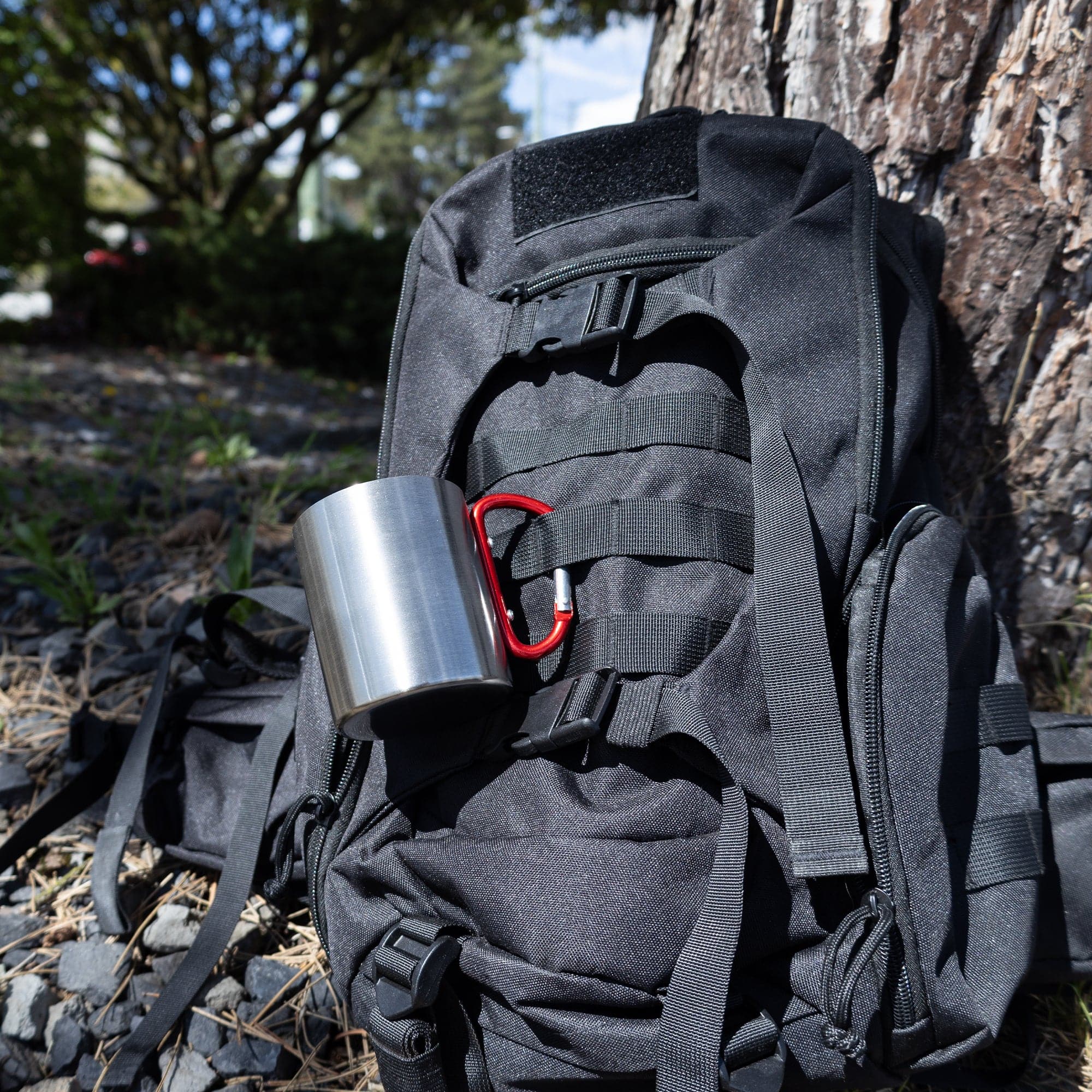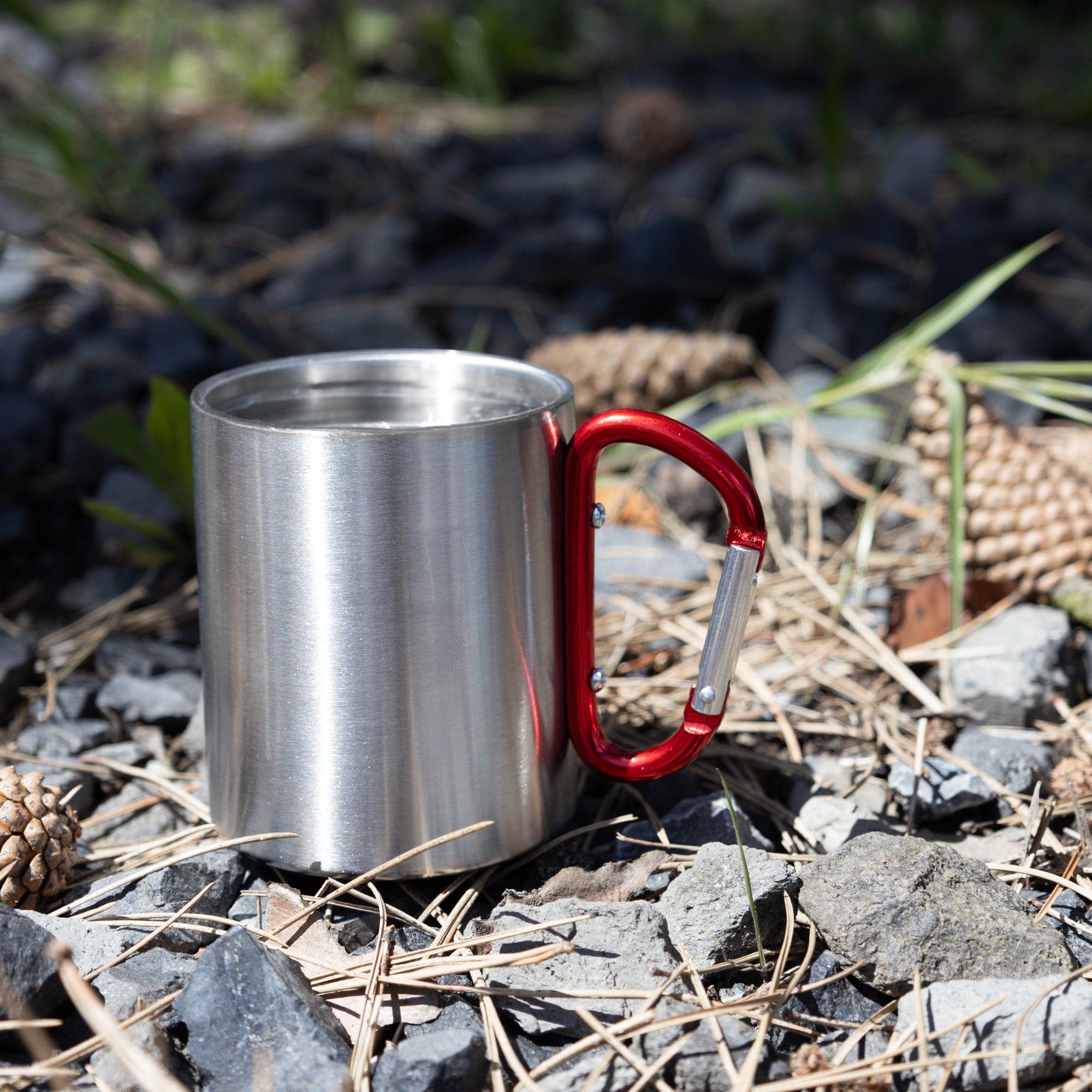 Attach-and-go with the convenient carabiner handle to your backpack, gear, and more while outdoors hiking, camping, or traveling. The single-walled stainless steel design allows for Quick boiling over a direct flame. Our Mug is the perfect size to hold a short order of your favorite drink while at home or out in the wilderness, or on an outdoor Adventure. Carabiner travel Mug is great for indoors, or outdoors while hiking, camping, and more easily attach to your backpack or gear with the carabiner handle material: single wall 304 stainless steel can boil over a direct flame volume.