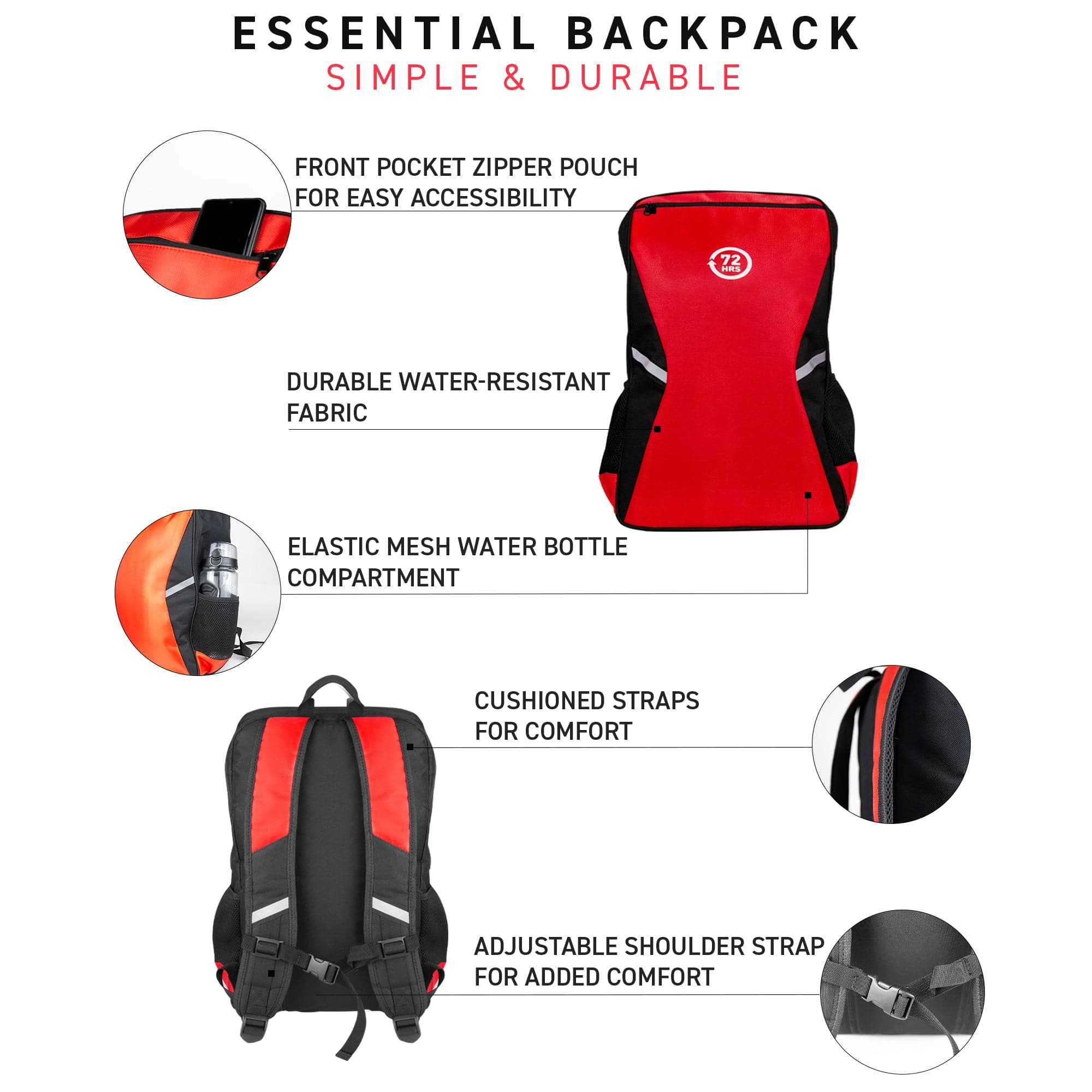 - [1] 72HRS Essential Backpack - Red or Black