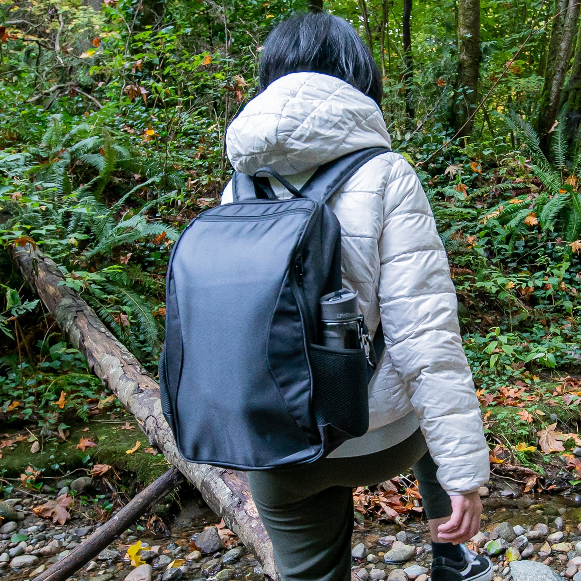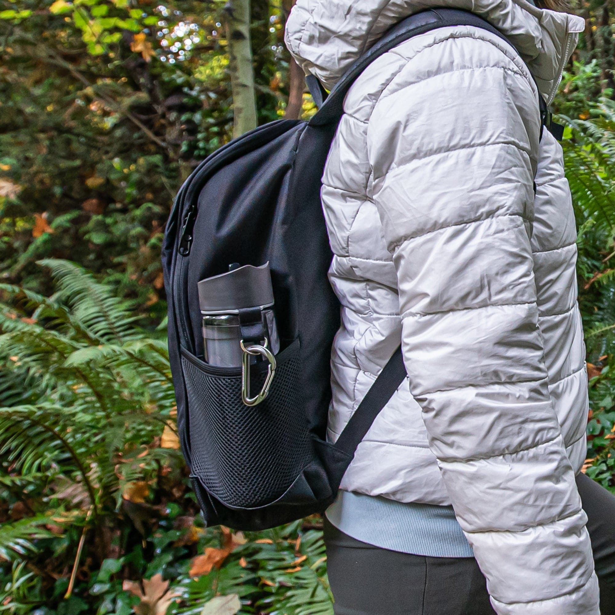 - Meshed water bottle compartment
