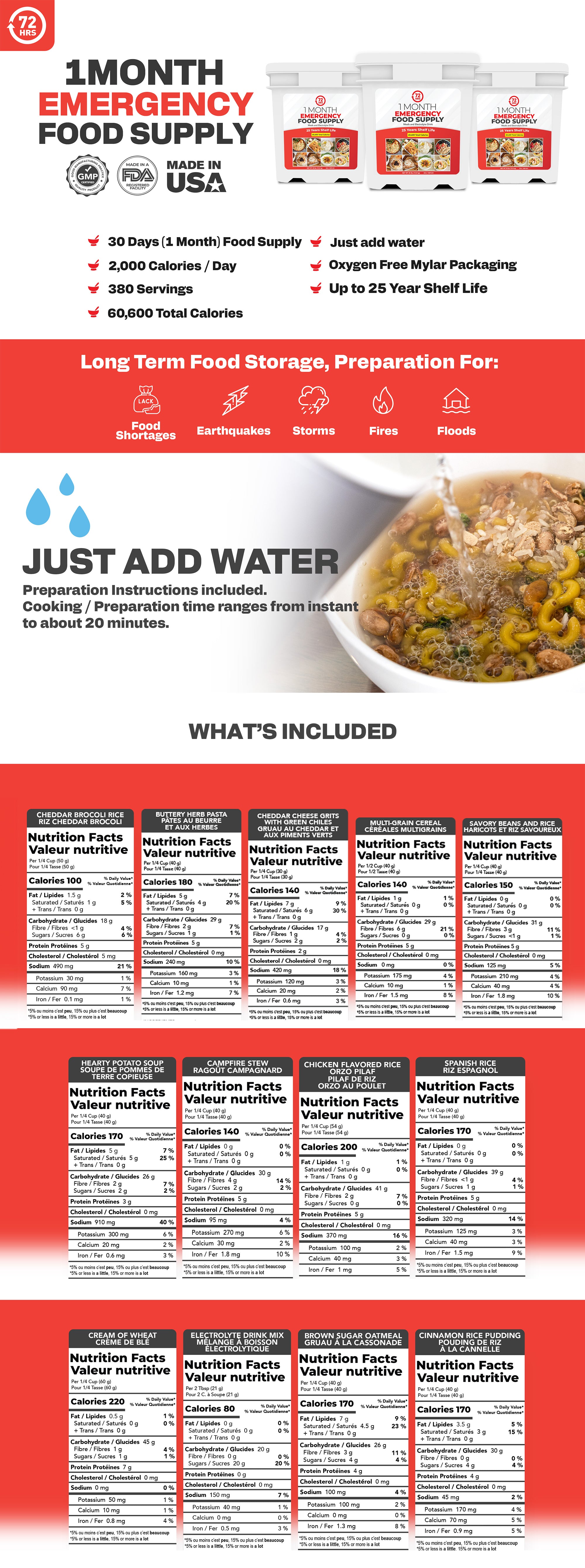 Get ready today to eat tomorrow. Being prepared can make a difference between life and death, and the importance of food storage has been recognized throughout history. In our current era, self-sufficiency is critical, given the numerous challenges we face such as natural disasters, pandemics, inflation, and international conflicts that affect food availability and prices. To address these concerns, 72HRS has developed a kit that offers a balanced and versatile food supply, providing essential calories and protein.