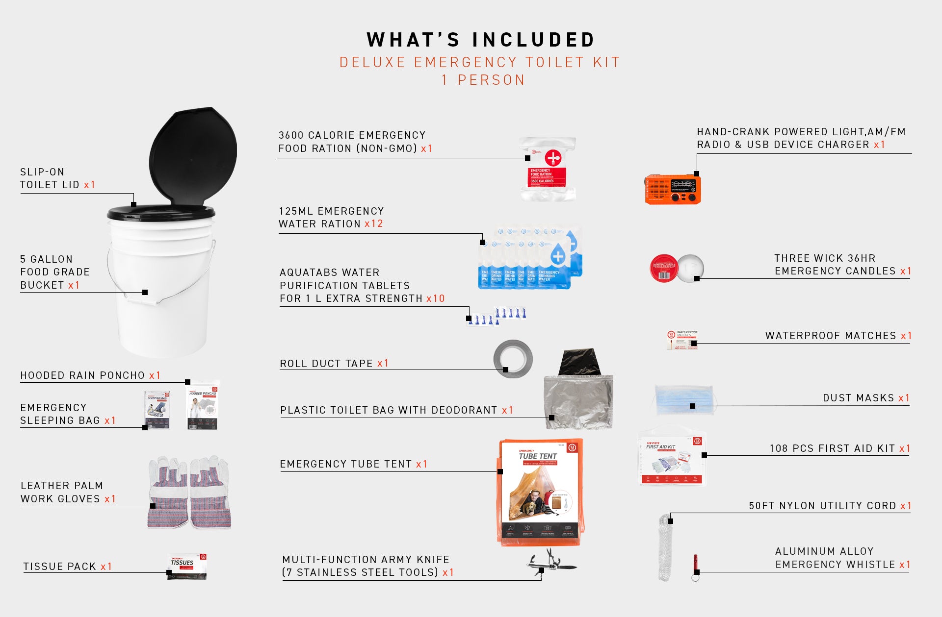 - 1 Person 72HRS Deluxe Toilet - Emergency Survival Kit
