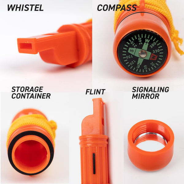 - 5-IN-1 Orange Survival Whistle with Lanyard