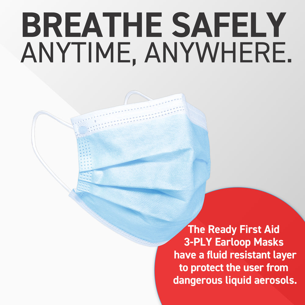 3-PLY Earloop Disposable Face Mask, Box of 50 - Ready First Aid