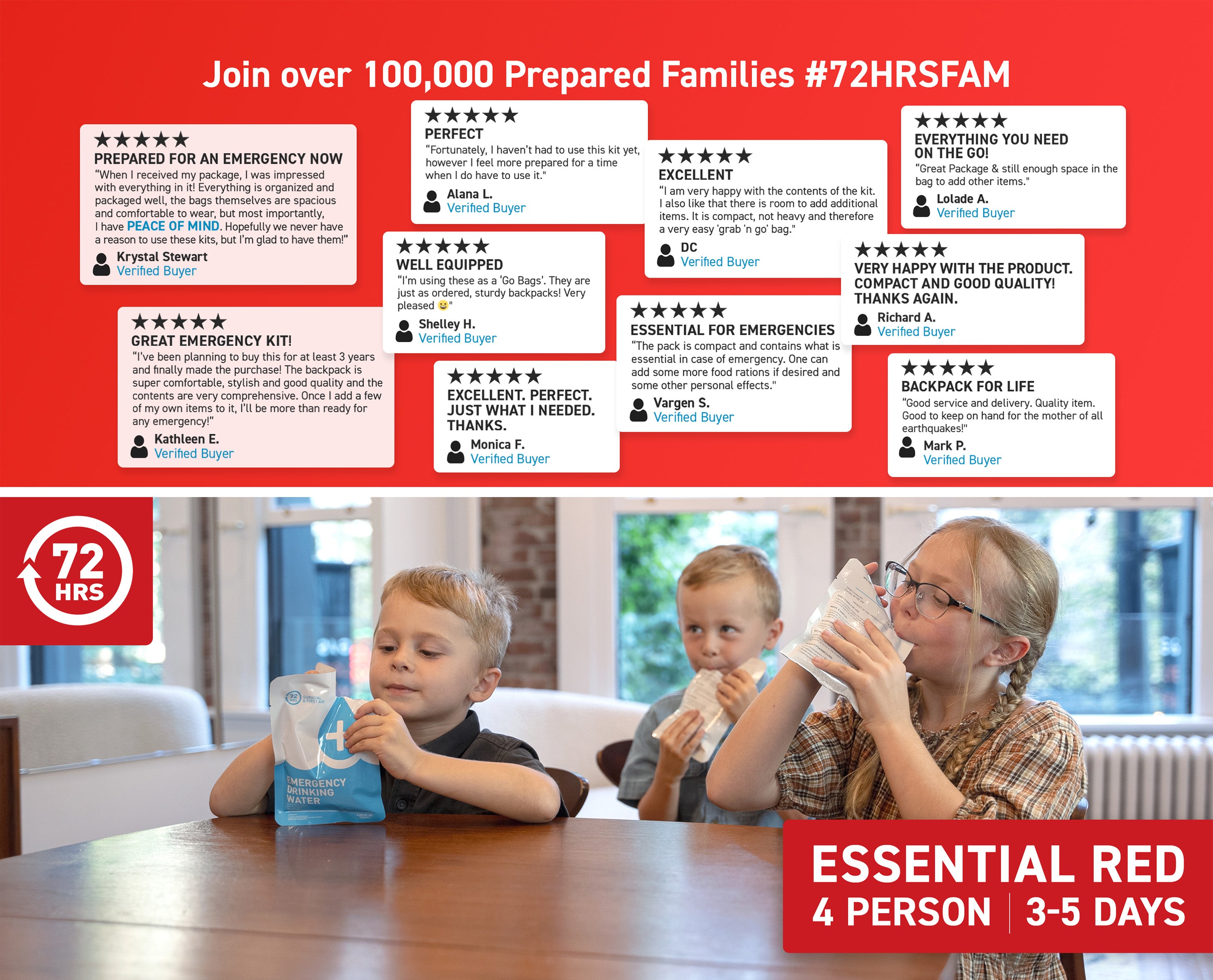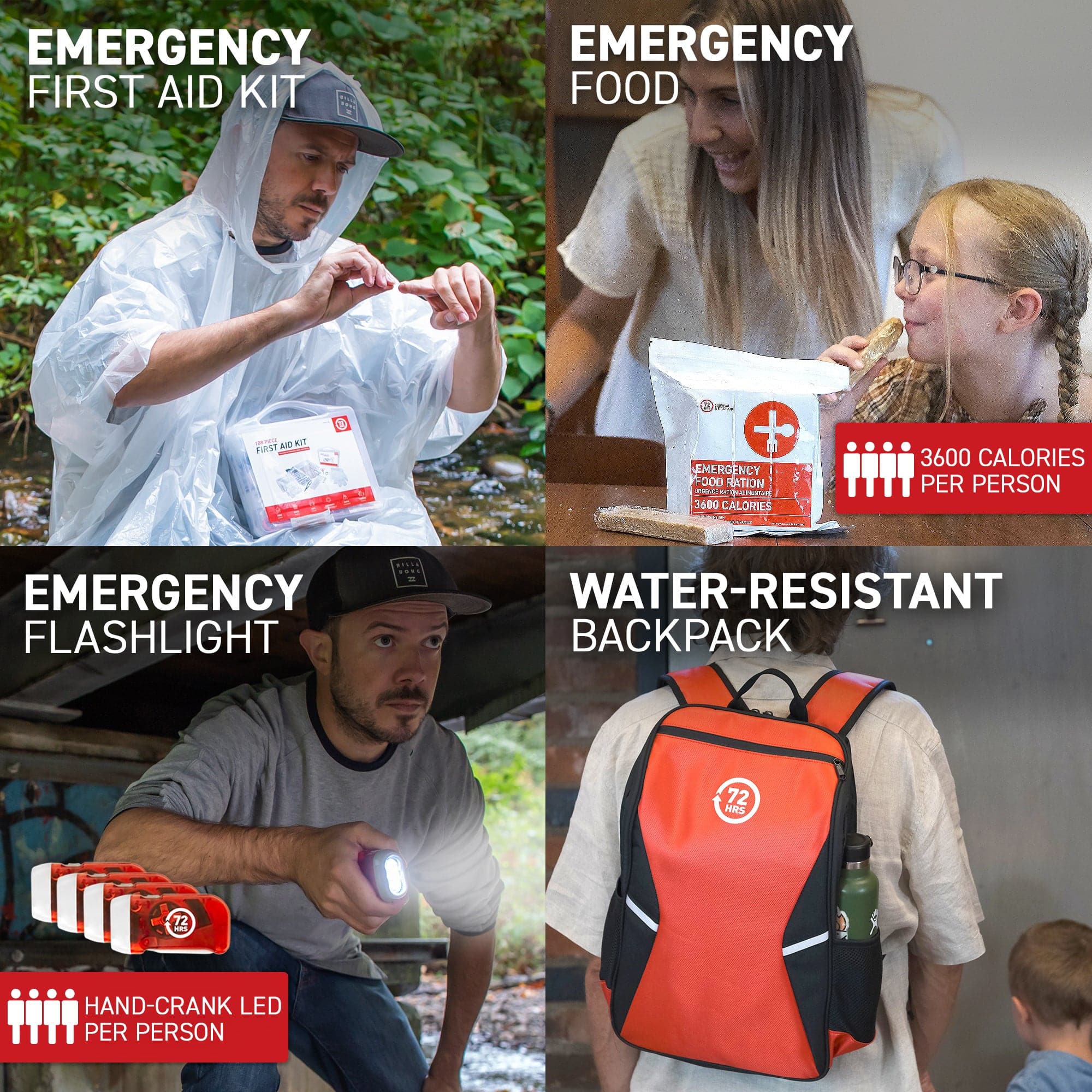 4 Person 72HRS Essential Backpack - Emergency Survival Kit (Red)
