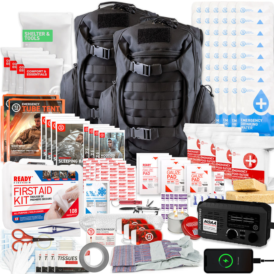 2 Person 72HRS Tactical Deluxe Backpack Kit with NOAA Weatherband Radio