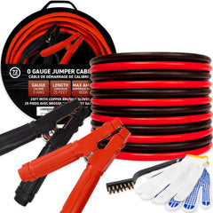 72HRS 0 Gauge Battery Jumper Cable With Gloves, 25 Ft