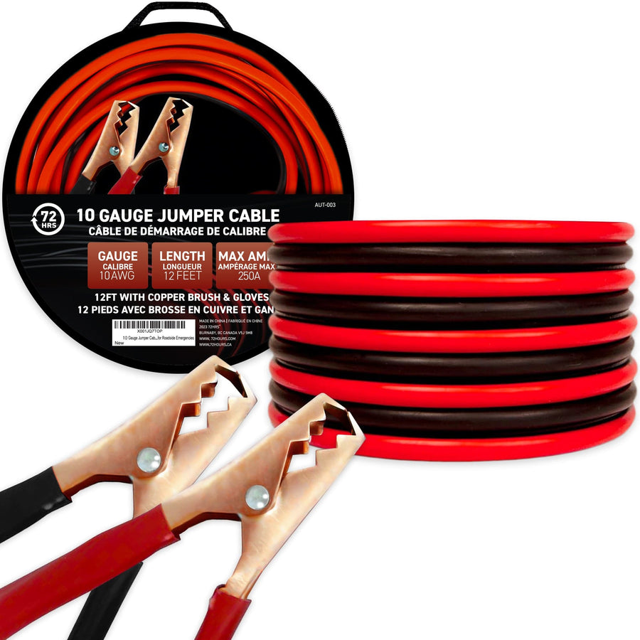 72HRS 10 Gauge Battery Jumper Cable, 12 Ft