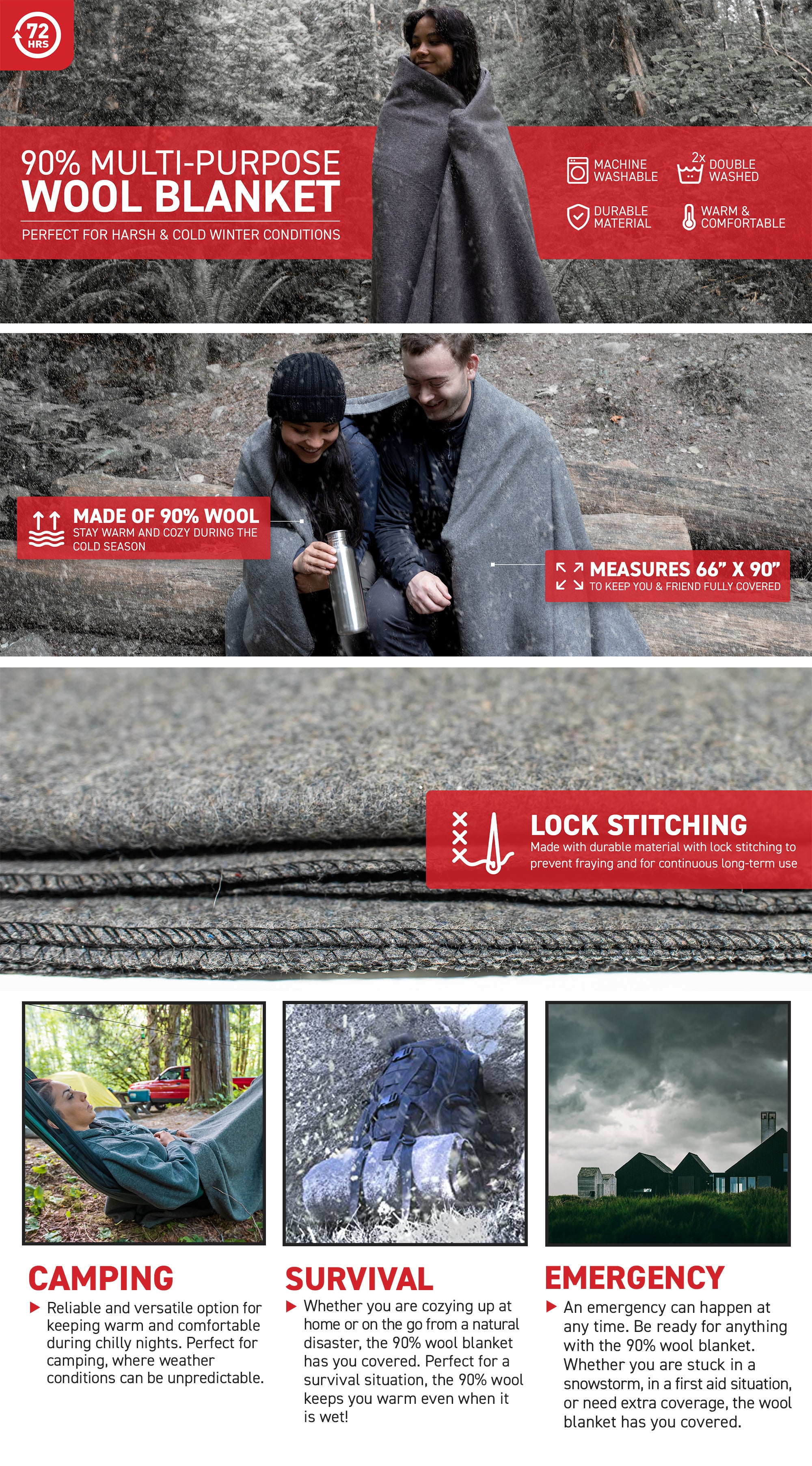 Use this multipurpose blanket to keep warm in cold temperatures or as ground cover, shelter, padding, as a protective shield from the elements, etc.—a great addition to your home, vehicle, or travel/survival gear. This is a very handy blanket to have while camping, hiking, backpacking, hunting, fishing, boating, traveling, as well as for extreme weather conditions and emergency situations.