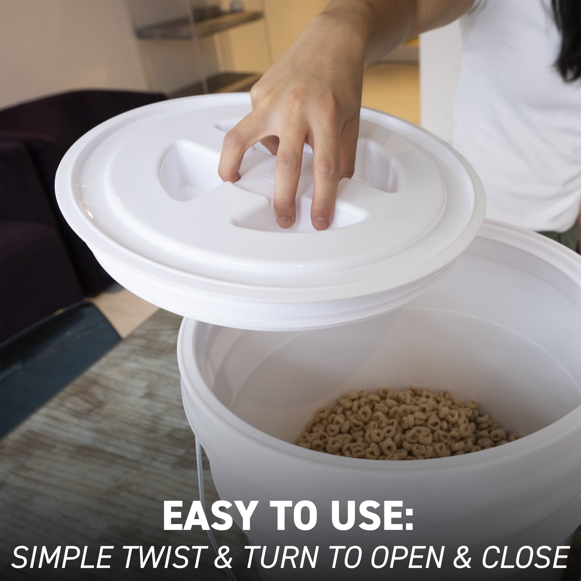Can be used at home, work, school, recreational use, and emergency use. Perfect for dry food storage including pet food, grains, oats, dried treats, dried ingredients, emergency food storage.