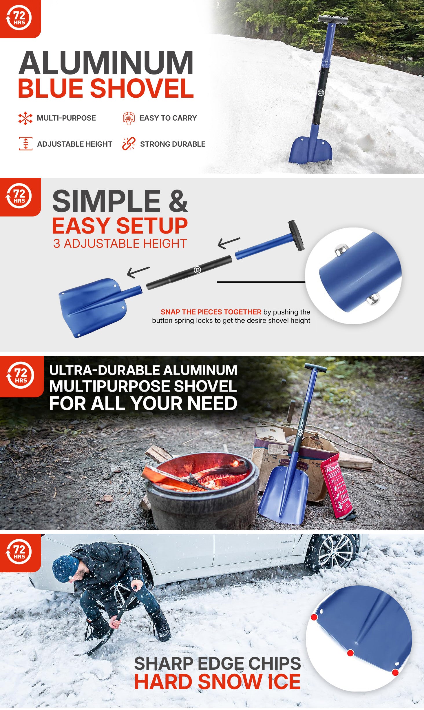 72HRS Aluminum Collapsible 3-in-1 Car Snow Shovel (Blue)
