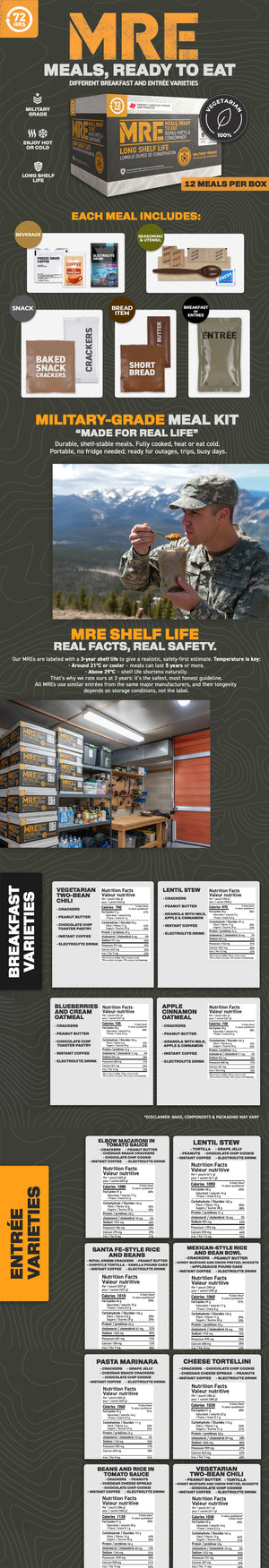 72HRS MRE Meals Pallet – 48 Cases of Ready-to-Eat Survival Food & Military Rations (Meat-Free)