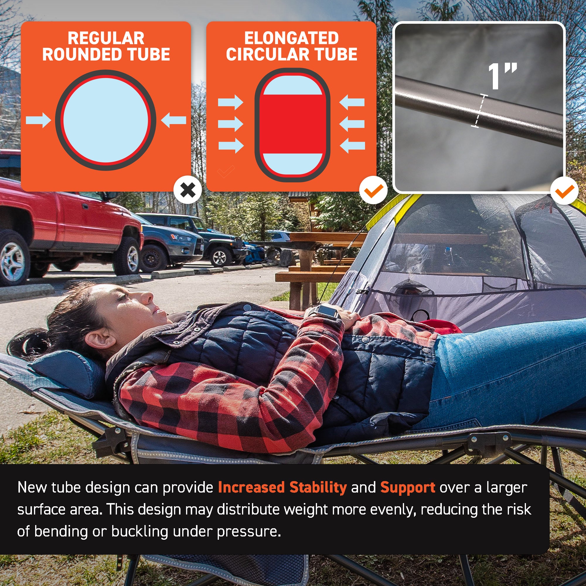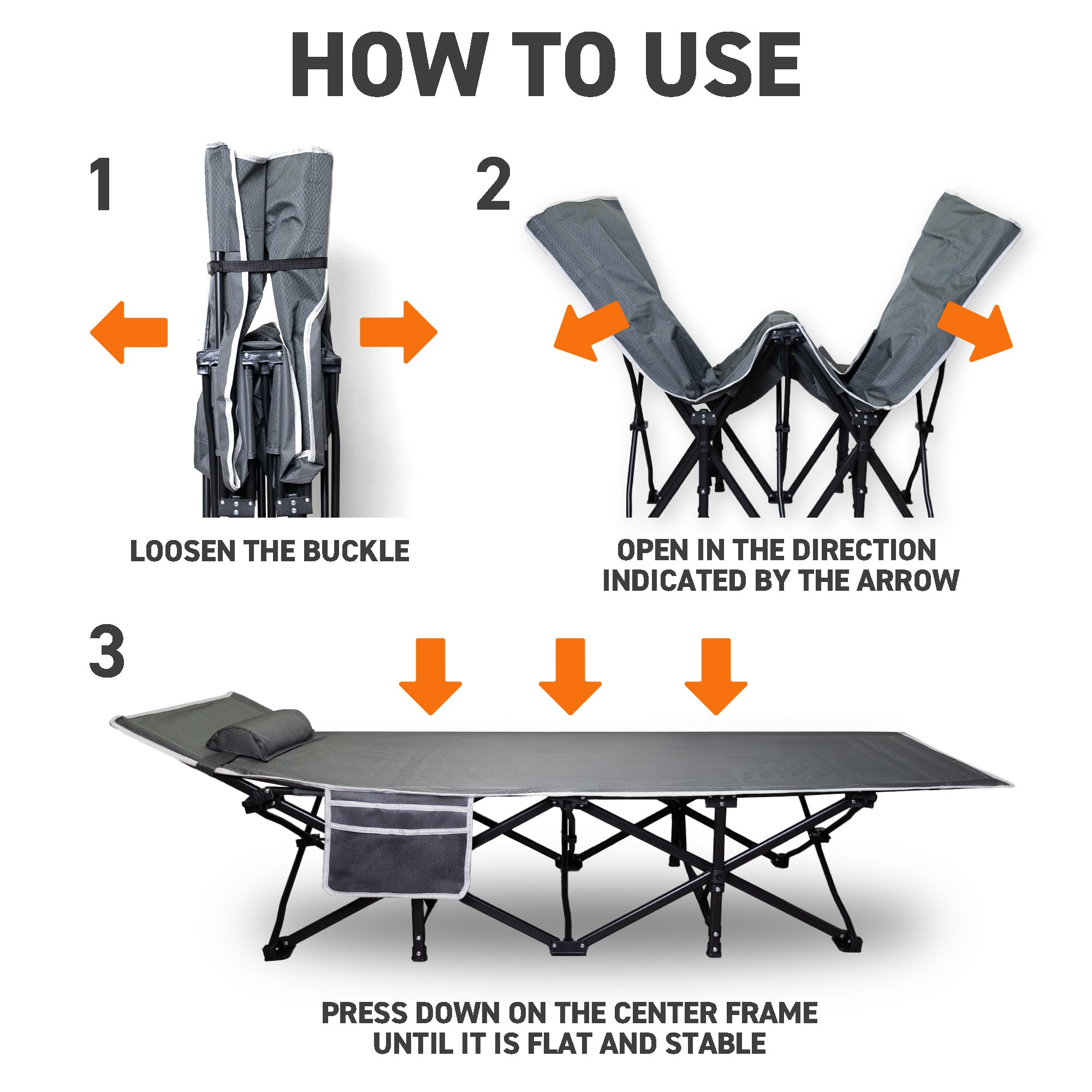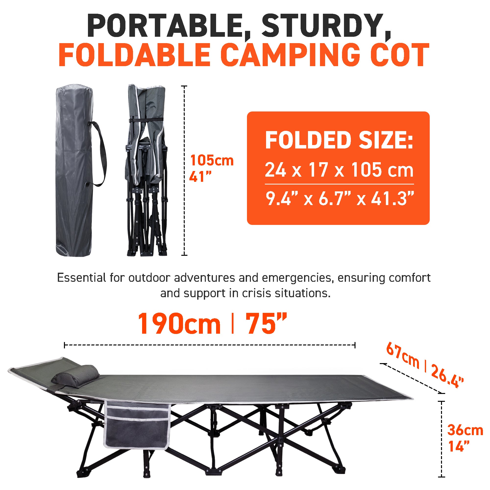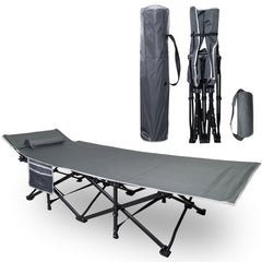 72HRS Portable Camping Cot, with Detachable Headrest and Carry Bag (Grey)