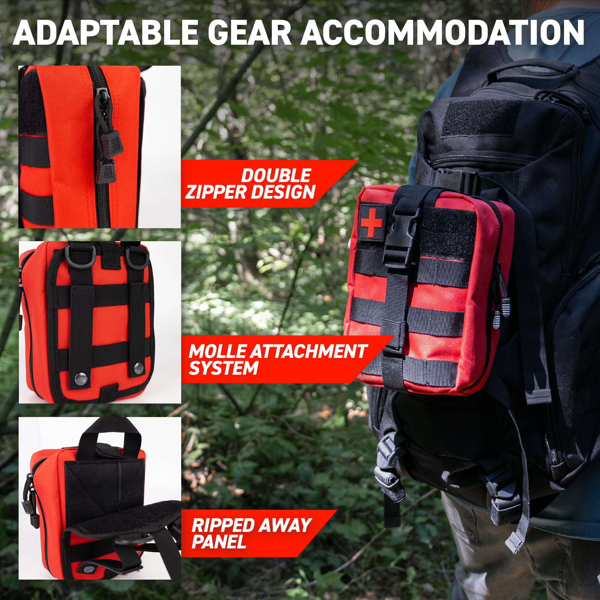 - Ripped Away Panel - Quick access in emergencies by detaching the bag swiftly.
