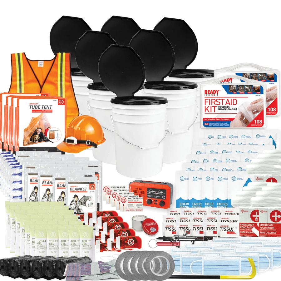 - Emergency food and water have up to 5-year shelf life (delivered within 1-6 months after the manufacturing date).