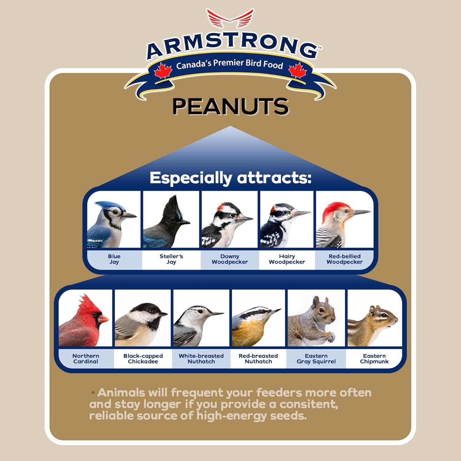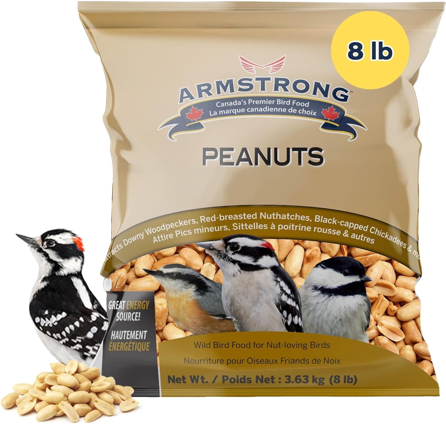 Armstrong Easy Pickens Peanuts provide a high-energy food source that is perfect for attracting a diverse range of wild birds and wildlife to your backyard. These peanut halves, weighing a total of 8 pounds, are especially favored by nut-loving birds like Blue Jays and woodpeckers as well as squirrels and chipmunks. Rich in protein and fat, these peanuts are ideal for feeding during the winter months when animals need extra energy to stay warm.