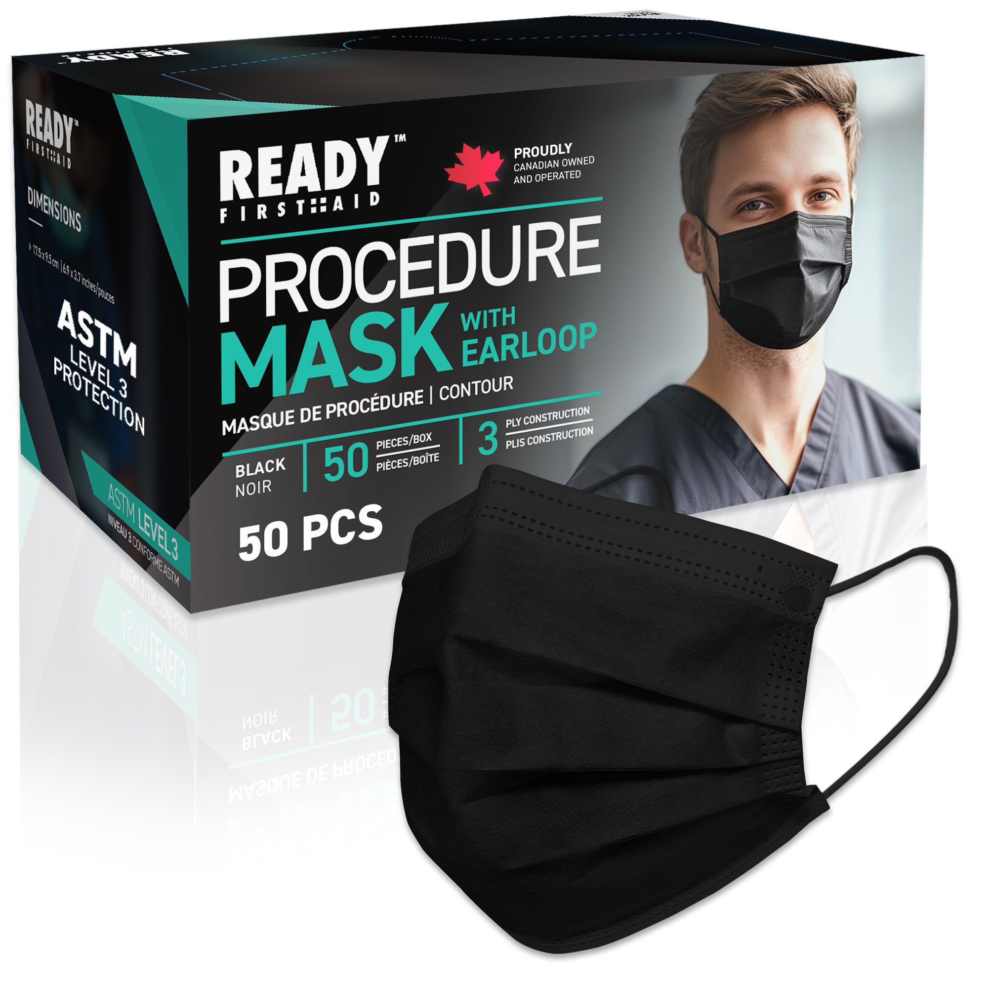 ASTM Level 3 Black Surgical Mask 3-Ply 50pcs - Ready First Aid (OPEN BOX)