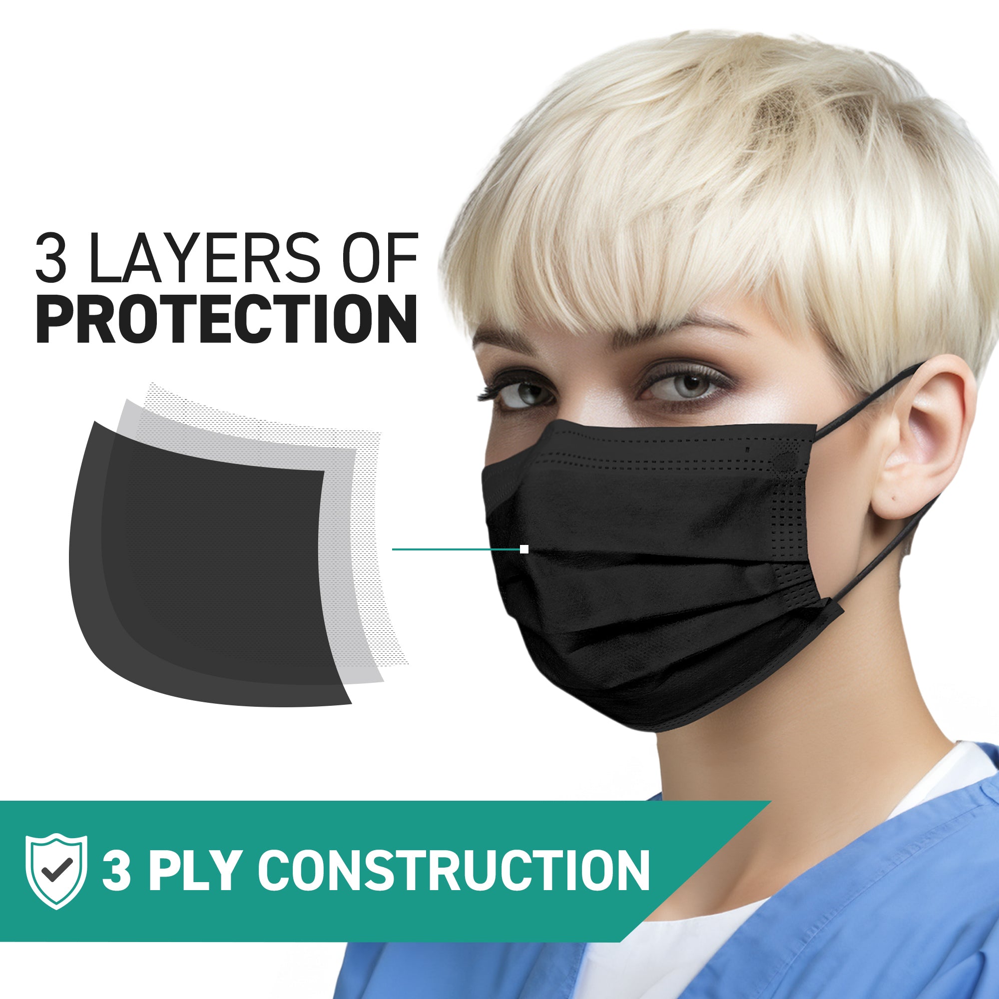 - 3-Ply Construction: Enhances filtration and breathability, ensuring comfort during prolonged use.