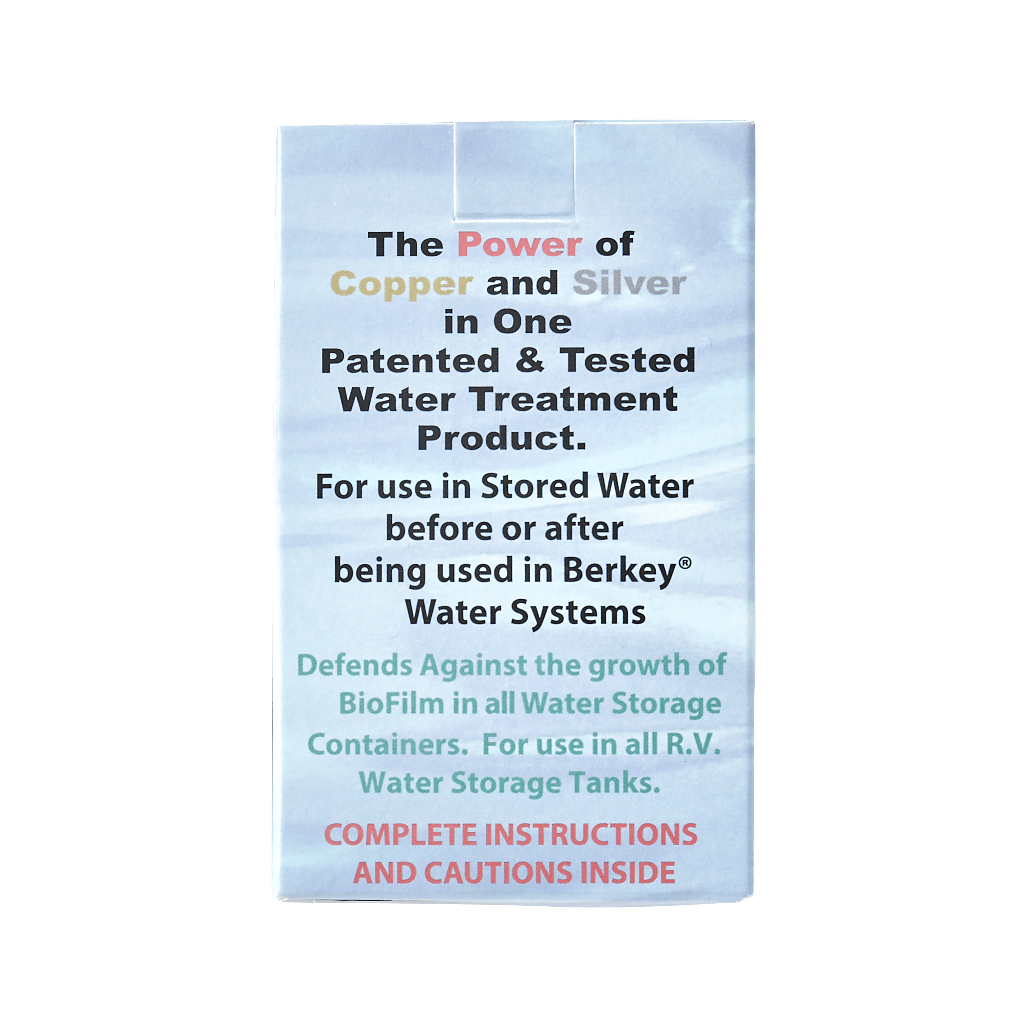 Copper and Silver ions are naturally occurring minerals that have anti-microbial properties, and have the power to treat water and containers. Does not contain chlorine and treats water for both bacteria & virus germs without having to rotate the water.