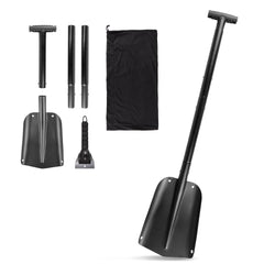 The 72HRS Black Aluminum Compact Multi-Purpose Shovel comes in 4 parts stored in a nylon drawstring bag for compact storage. Included with the shovel is an ice scraper used to easily scrape ice off your windshield.