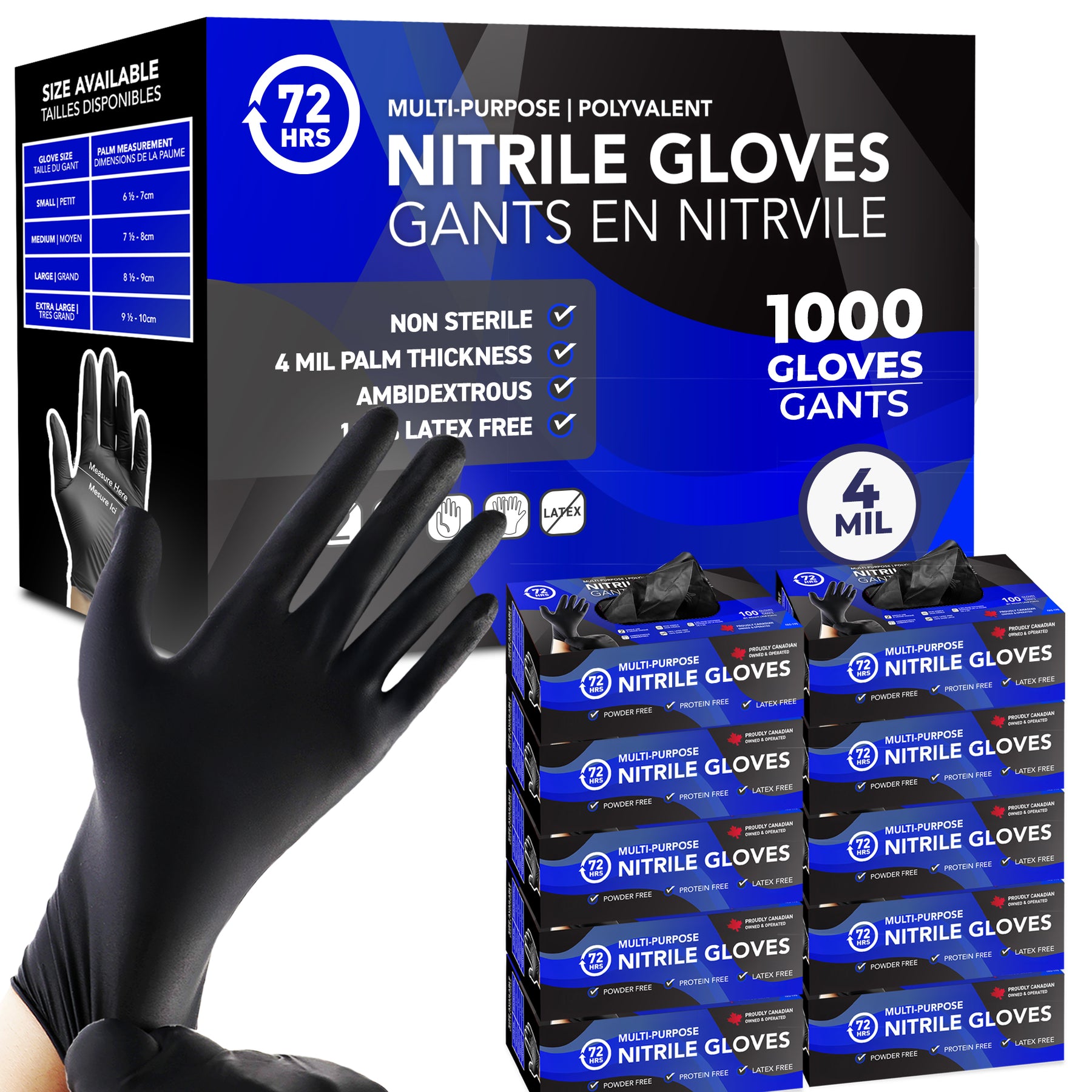Black Nitrile Gloves, All Purpose Gloves, Case of 10 packs x 100 gloves, 4.0 Mil- 72HRS