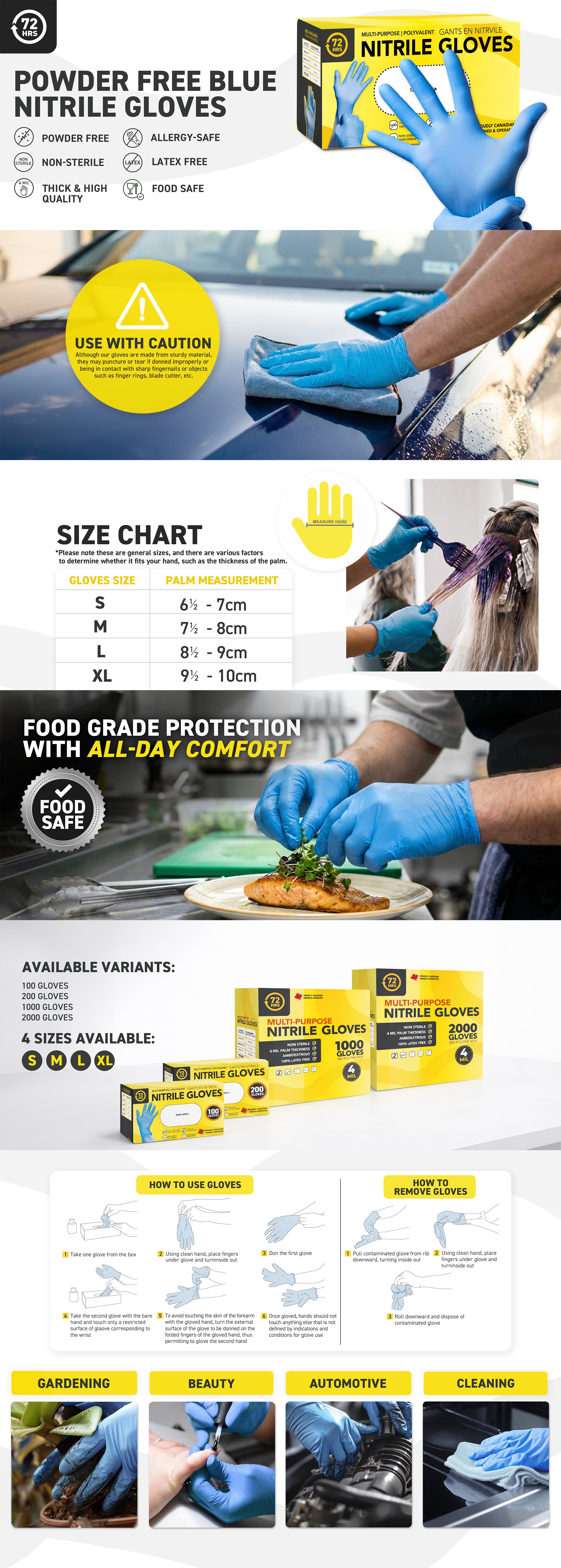 Blue Nitrile Gloves, All Purpose Gloves, Box of 100 Pieces, 4.0 Mil- 72HRS