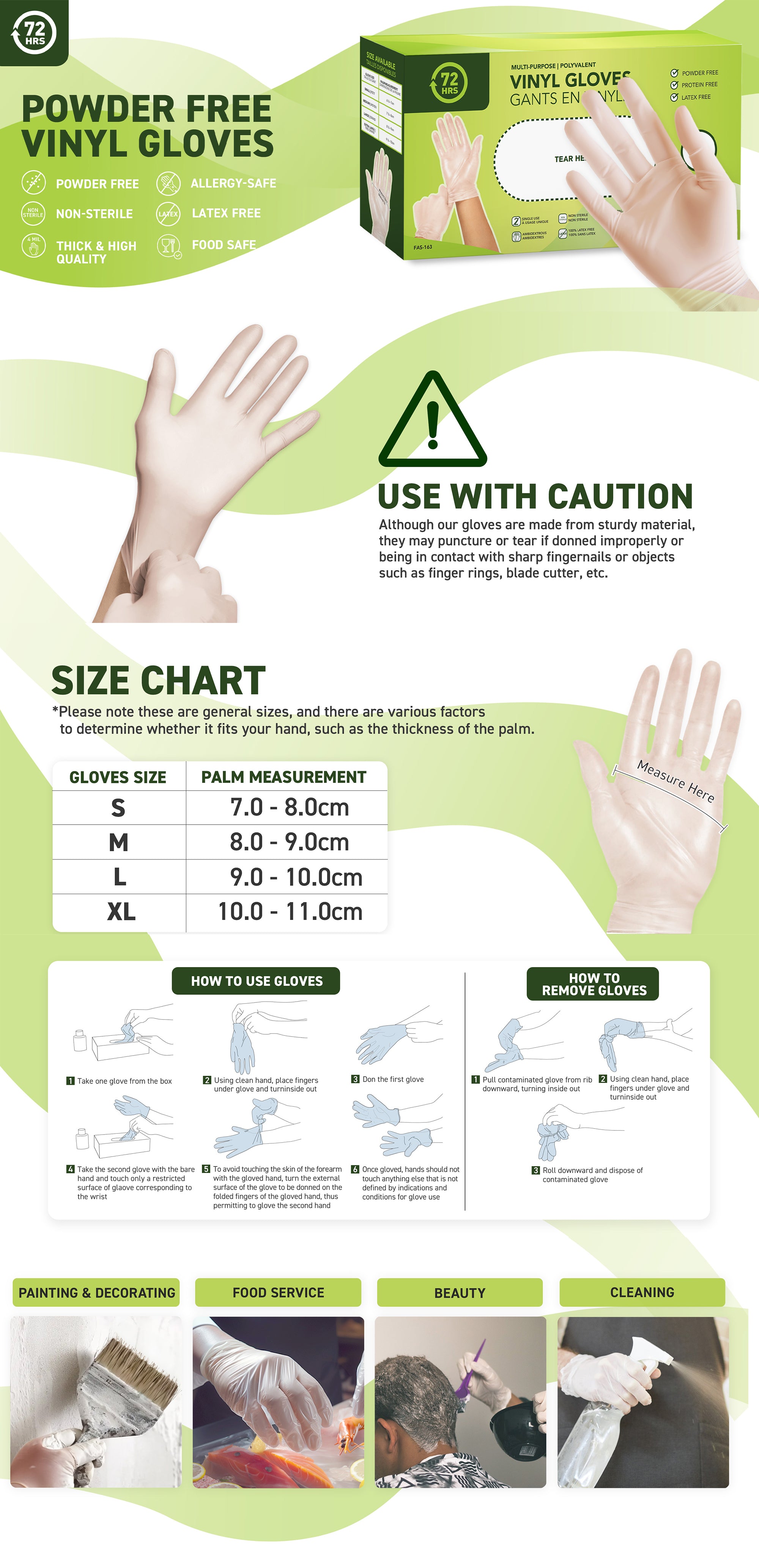 Clear Vinyl Gloves, All Purpose Gloves, Box of 100 Pieces, 4.0 Mil - 72HRS