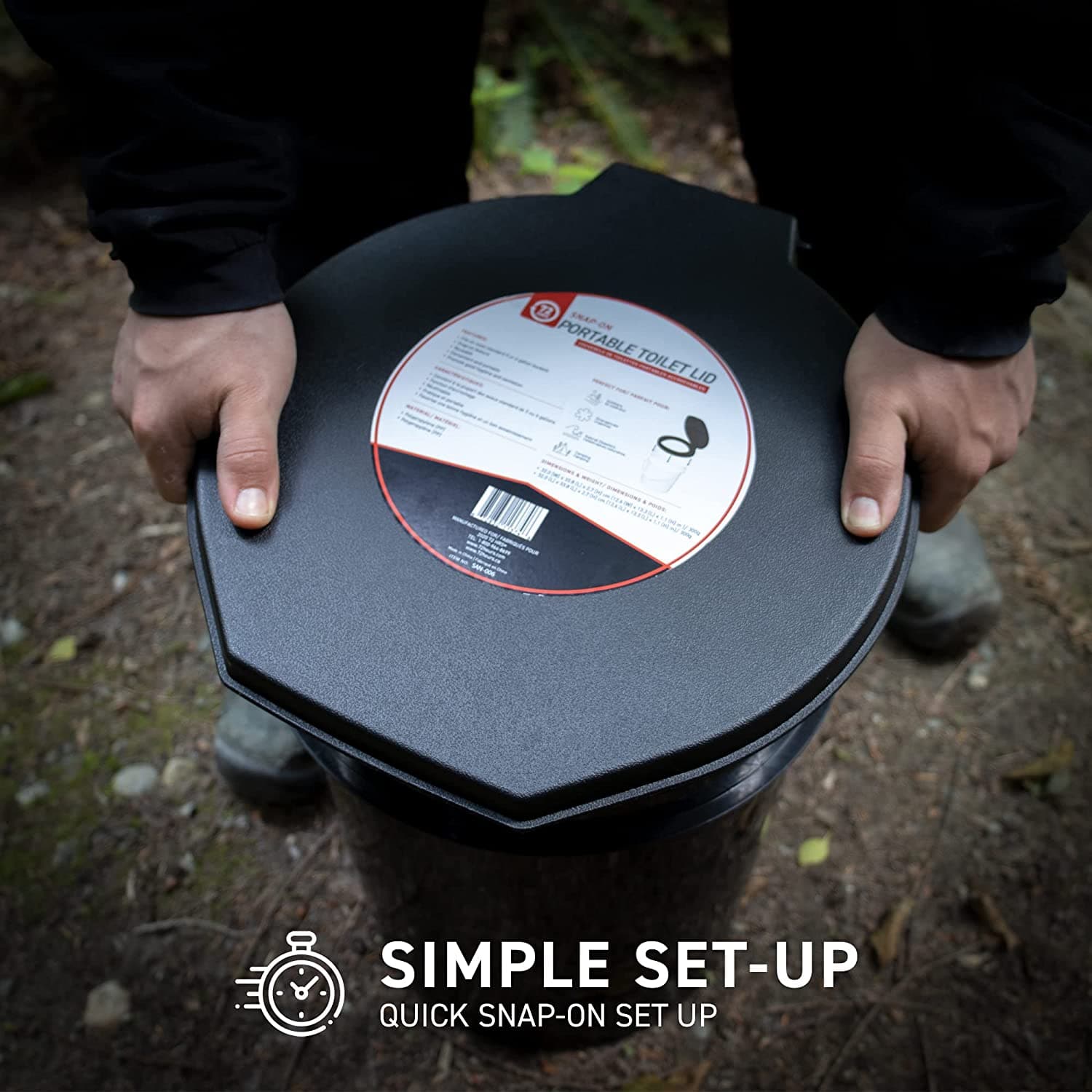 The Snap-On Toilet Lid fits on most standard size 5 or 6 gallons. Pail converting it into a portable toilet. The toilet seat uses a simple snap-on feature to secure itself to the pail.