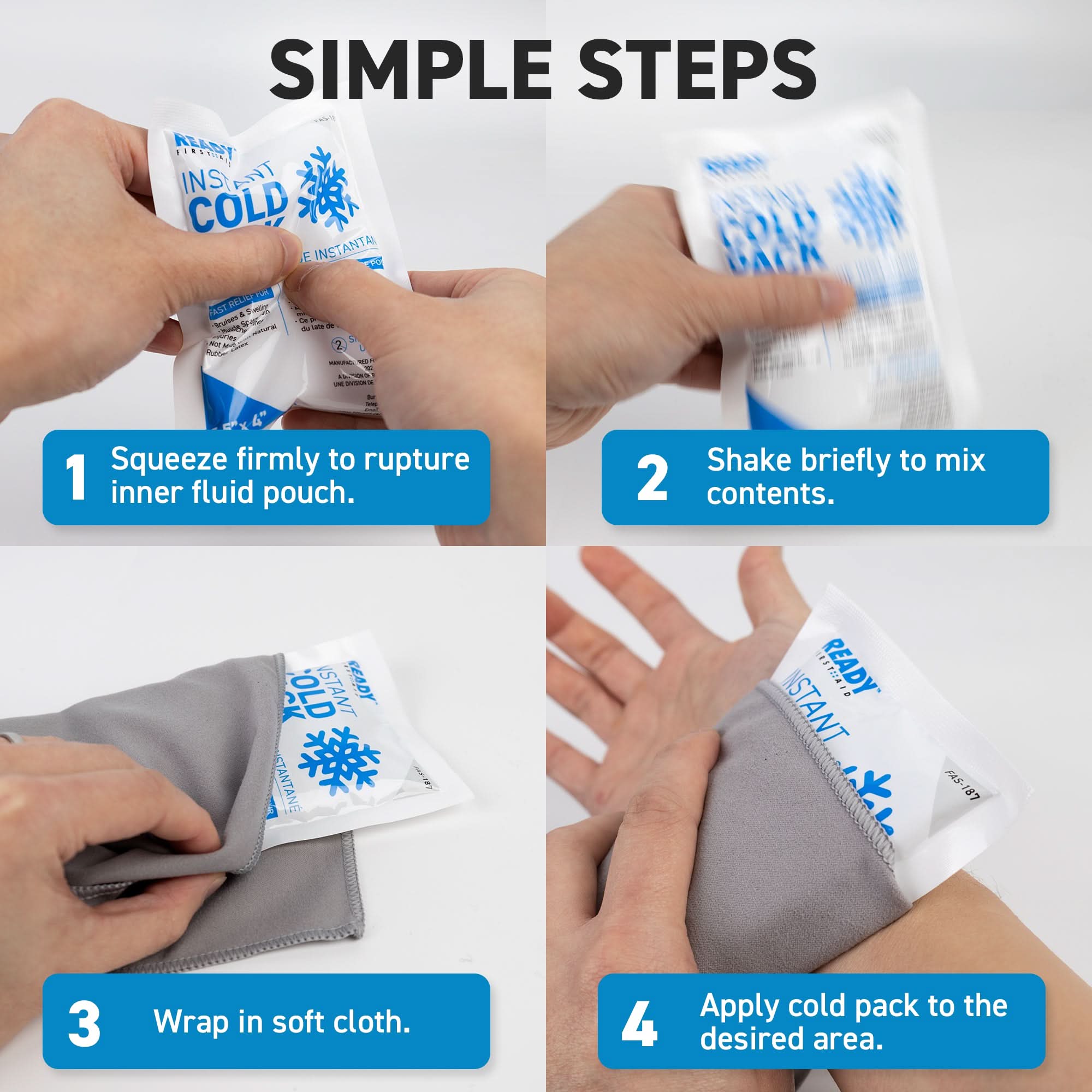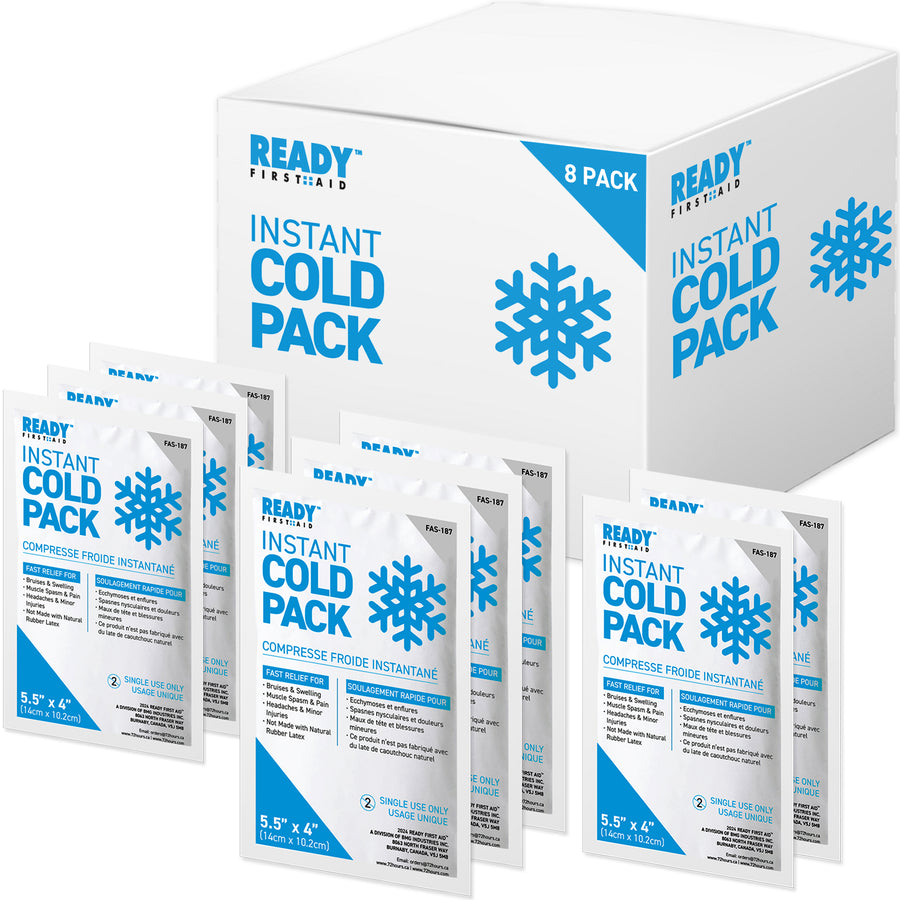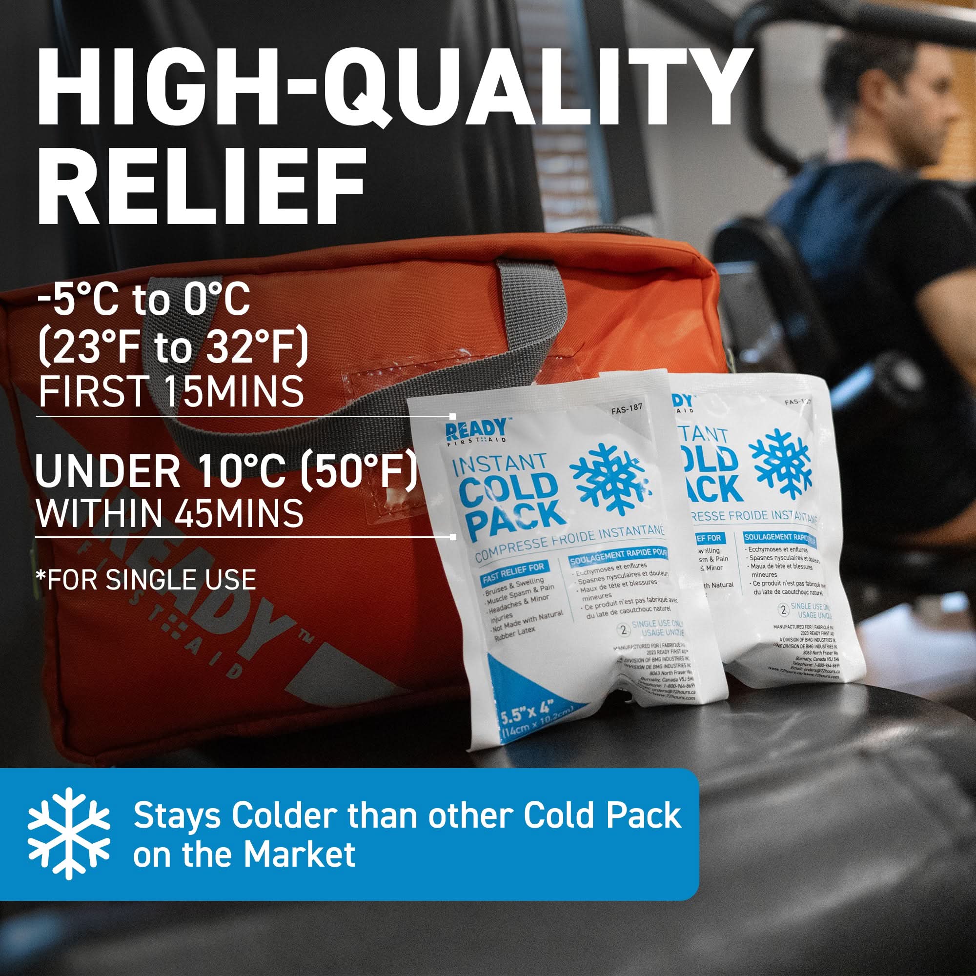 The Ready First Aid Instant Cold Pack is easy activated and ready to use for instant cold therapy for emergency situations. The instant ice pack provides fast relief for bruises, swelling, muscle spasm, pain, headaches & minor injuries. Ice packs are a very effective and extremely easy to use first aid tool.