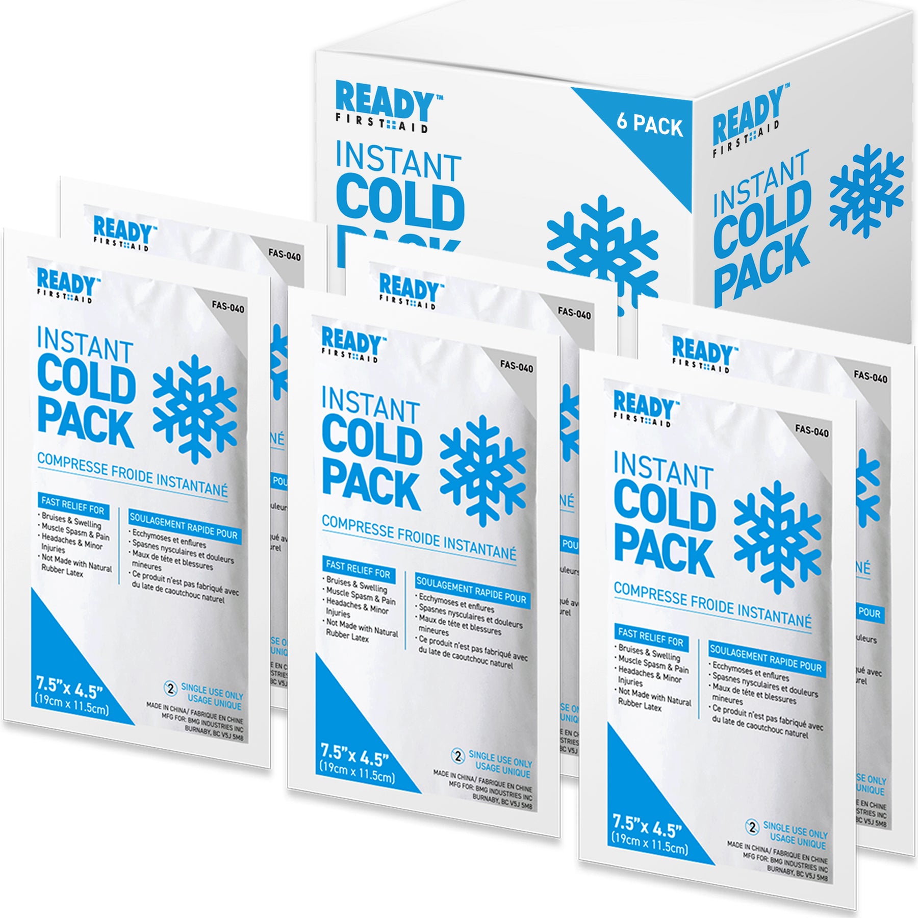 The Ready First Aid Instant Cold Pack is easy activated and ready to use for instant cold therapy for emergency situations. The instant ice pack provides fast relief for bruises, swelling, muscle spasm, pain, headaches & minor injuries. Ice packs are a very effective and extremely easy to use first aid tool.