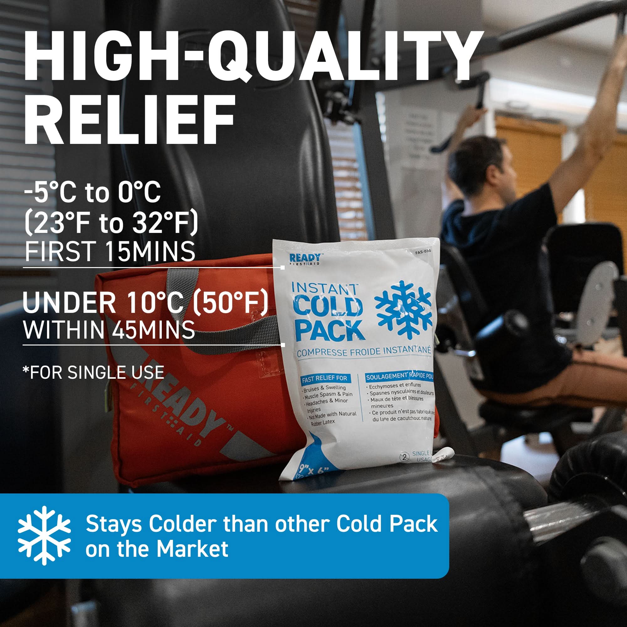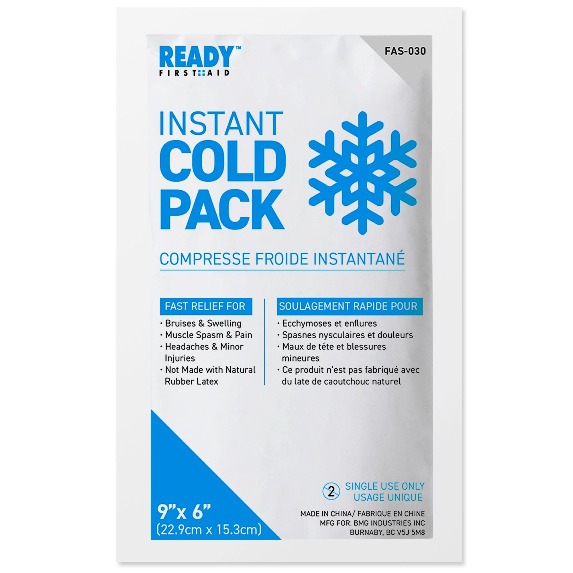 The Ready First Aid Instant Cold Pack is easy activated and ready to use for instant cold therapy for emergency situations. The instant ice pack provides fast relief for bruises, swelling, muscle spasm, pain, headaches & minor injuries. Ice packs are a very effective and extremely easy to use first aid tool.