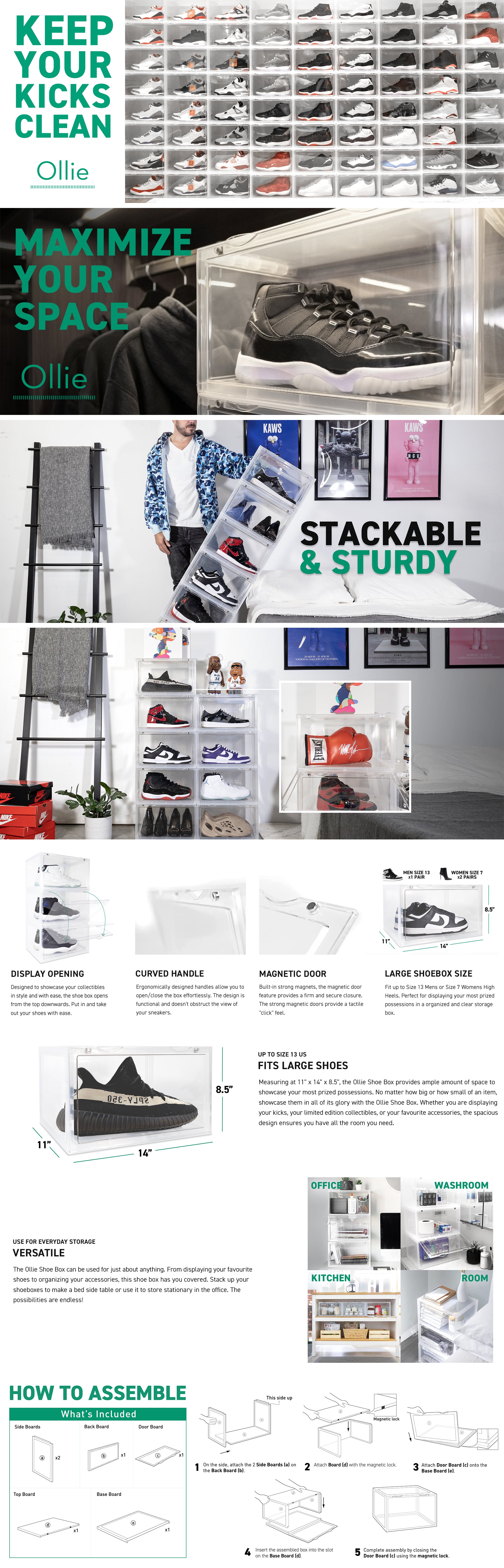 - [1] Ollie Hard Solid Shoe Box Organizer - Clear (6 pieces per shoebox)