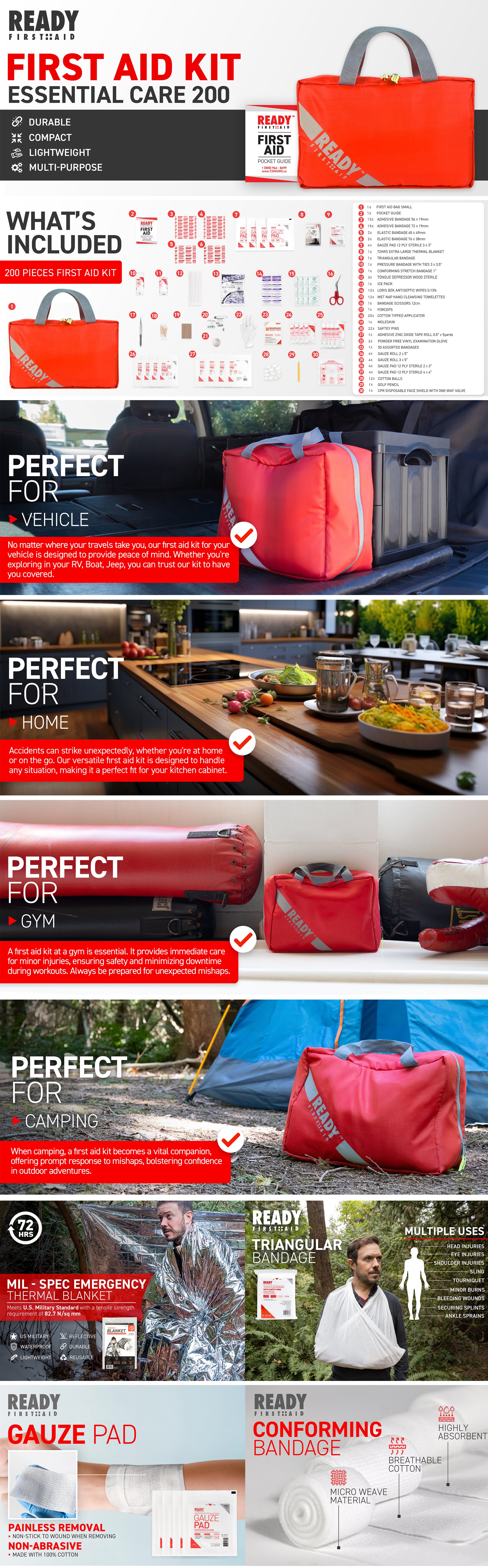 Ready First Aid - 200 Pieces Essential Care First Aid Kit