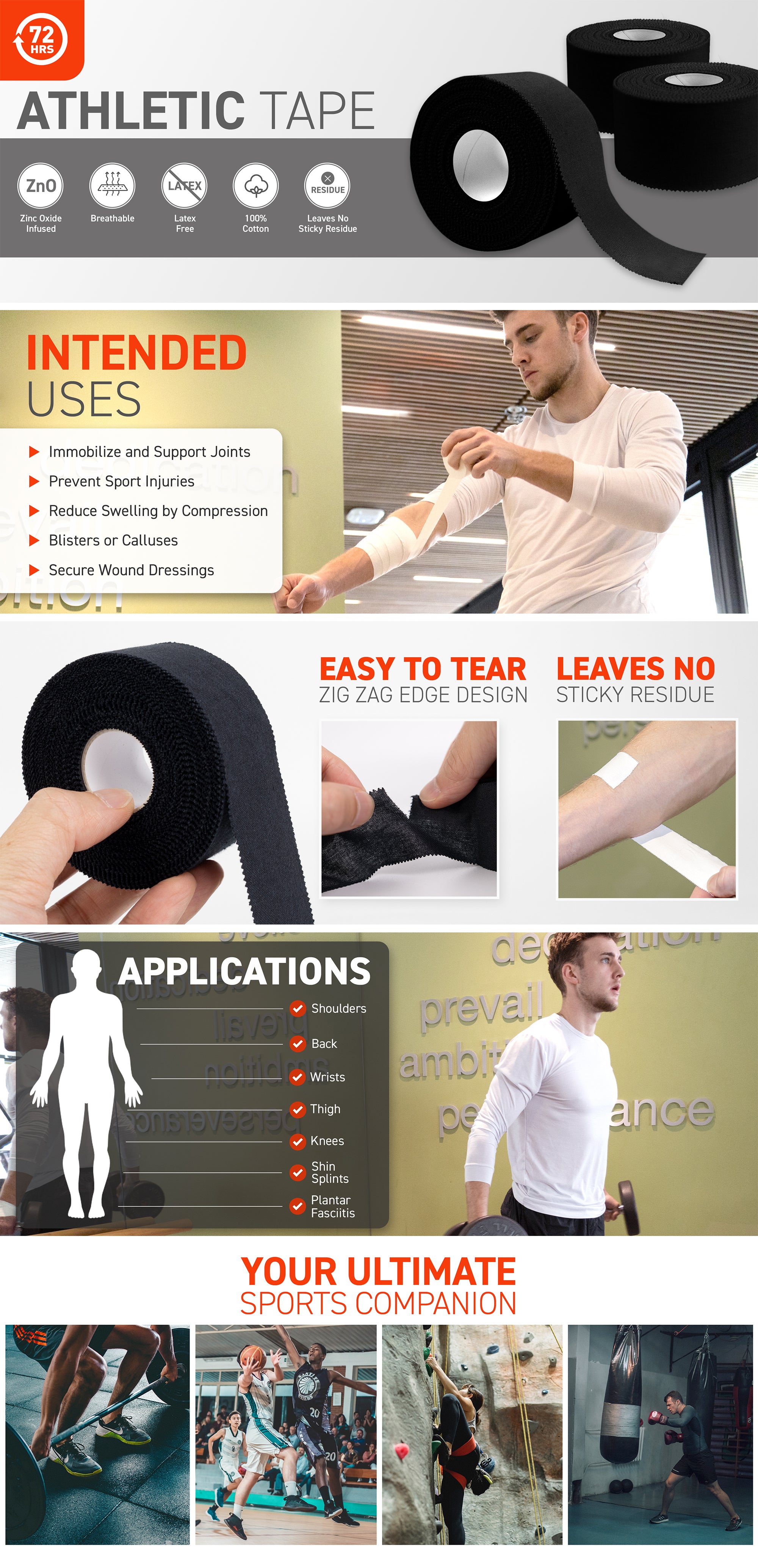 Ready First Aid Athletic Sport Tapes- (1.5' x 15 Yrd) (Black)