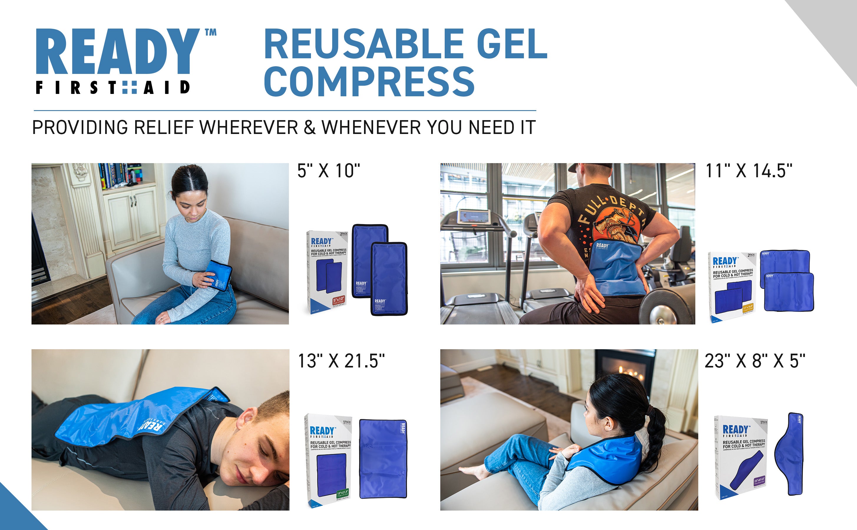 Ready First Aid Reusable Gel Cold & Hot Pack - 23" x 8" x 5", Pack of 2