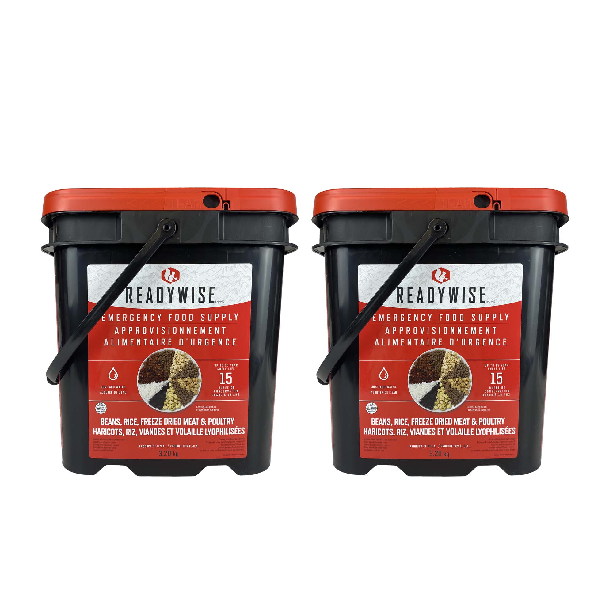 ReadyWise Emergency Freeze Dried Meats and Beans + Rice, 2 Buckets Combo
