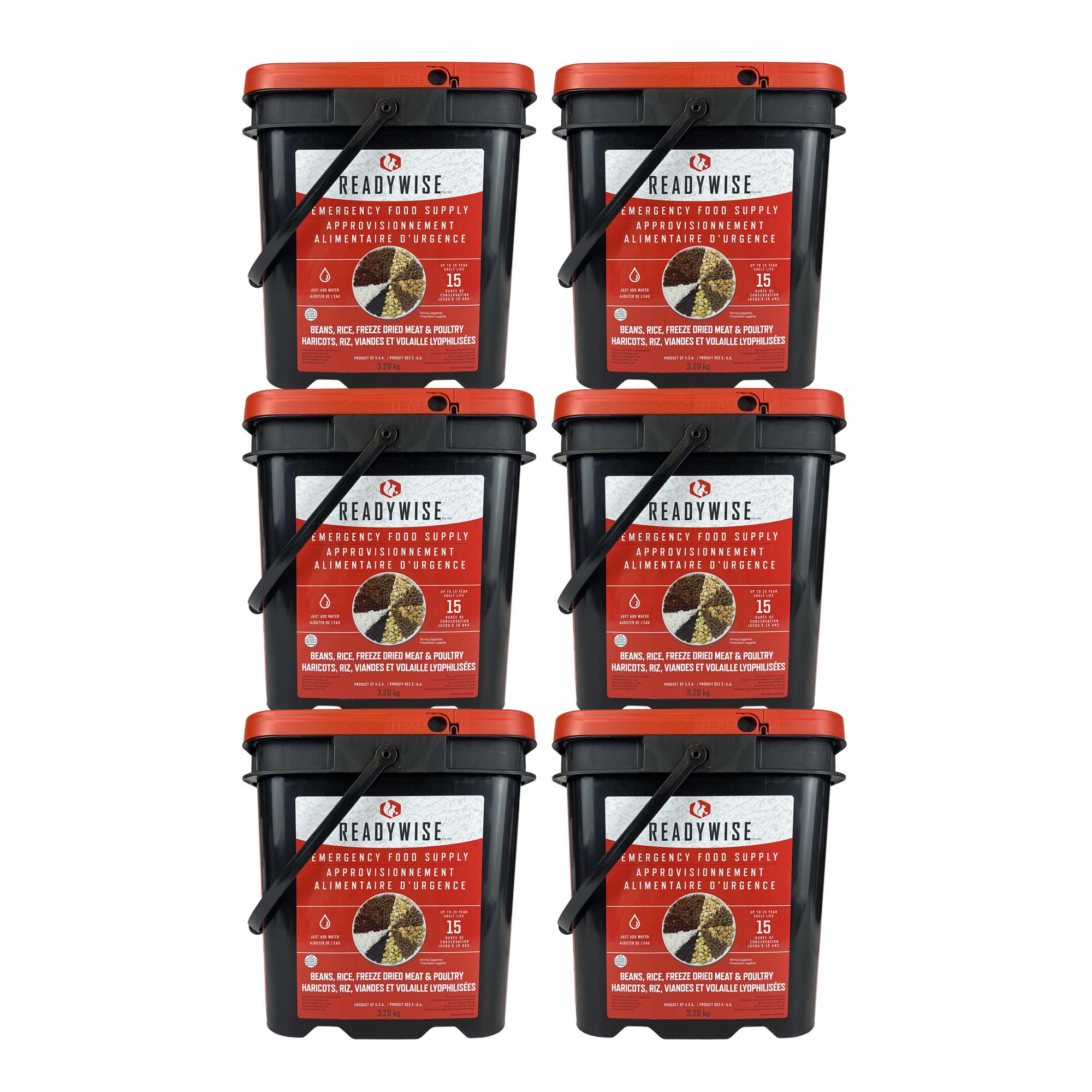 ReadyWise Emergency Freeze Dried Meats and Beans + Rice, 6 Buckets Combo